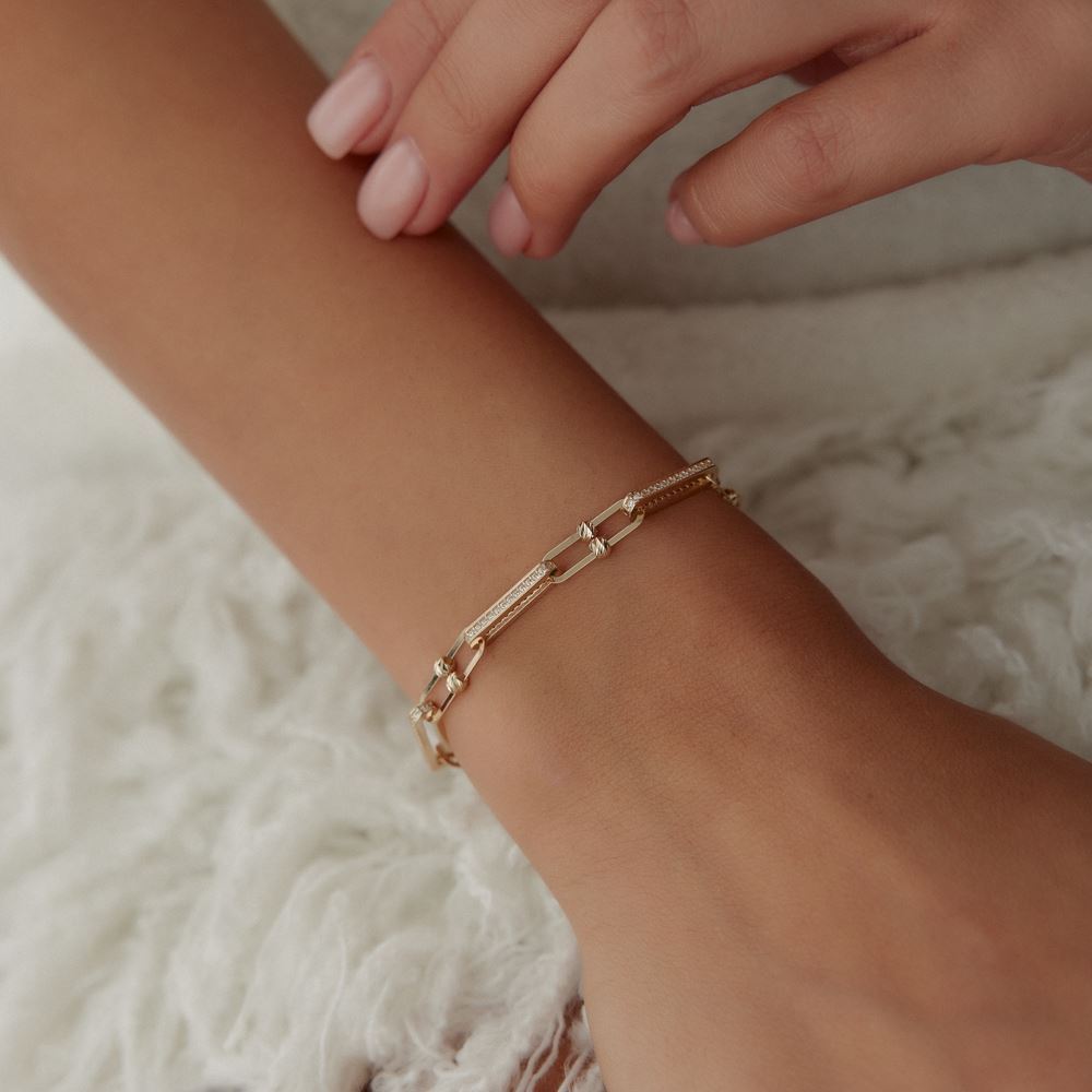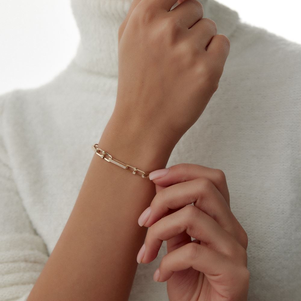 Işıltılı taşlarla süslenen Ataç Dorika bileklik, E-Goldia Jewellery'nin benzersiz tasarımları arasında.