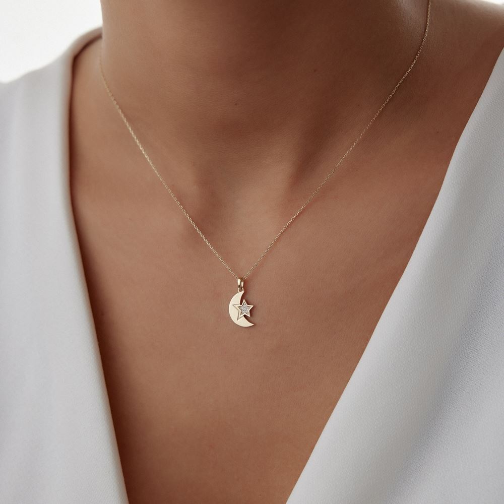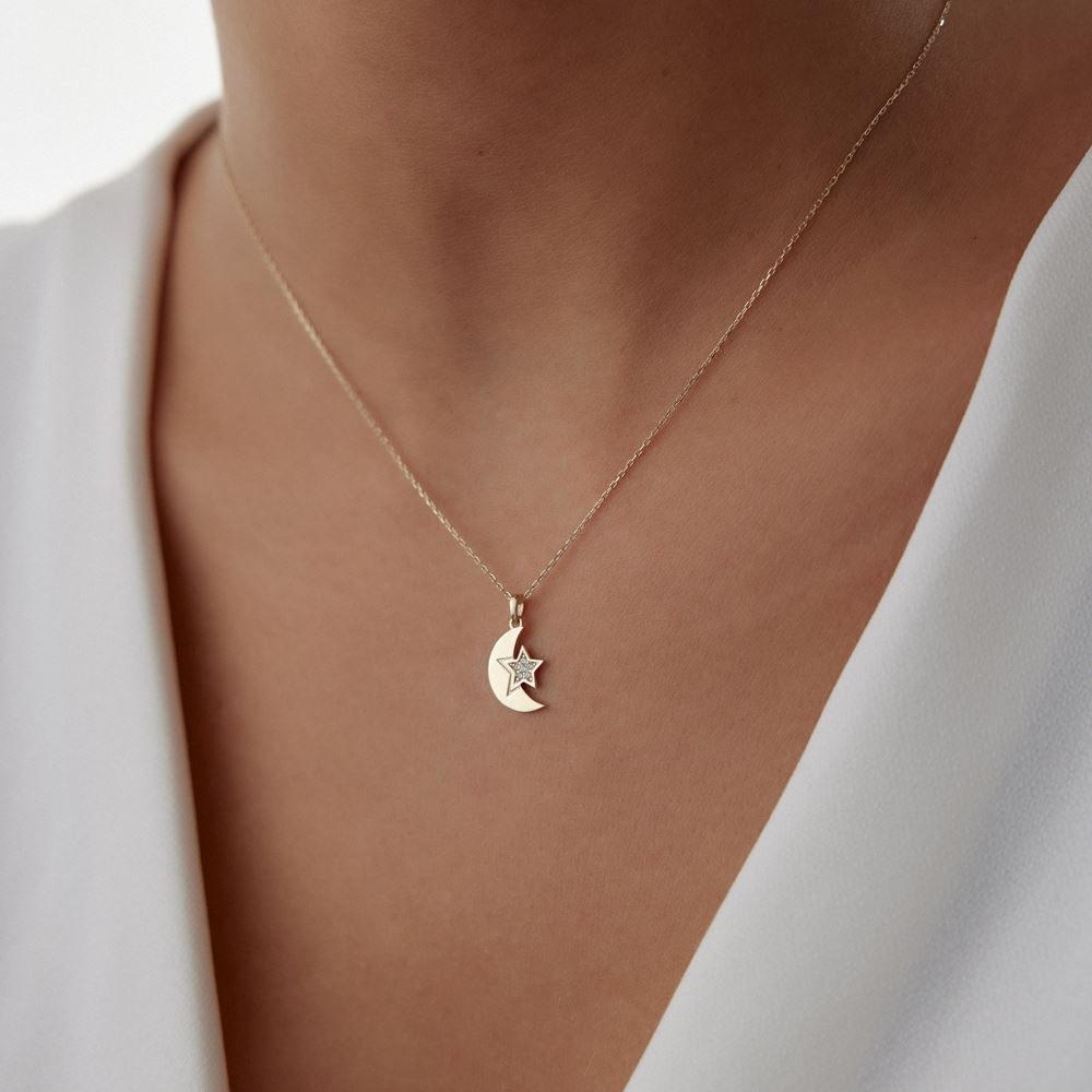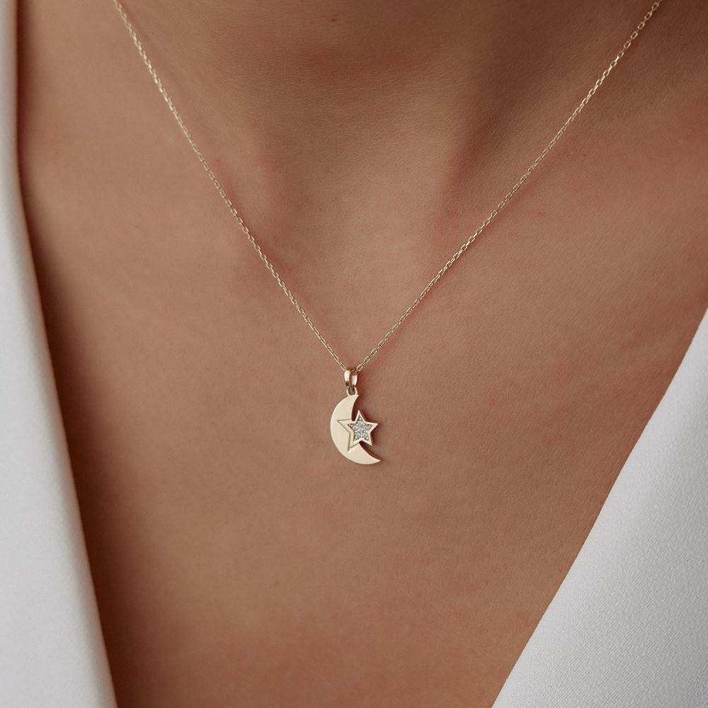 Ay yıldız taşlı kolye, anlamlı ve zarif detaylarıyla E-Goldia Jewellery’de stilinizi tamamlıyor.