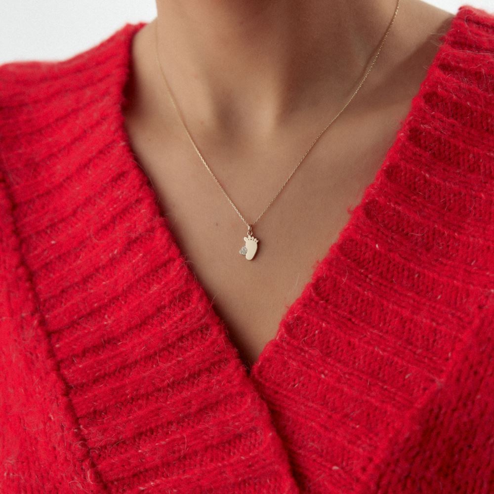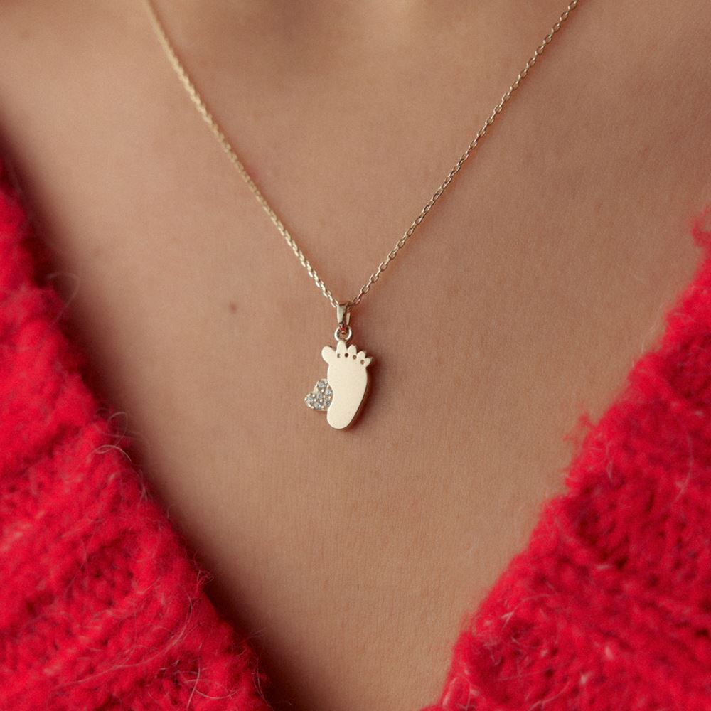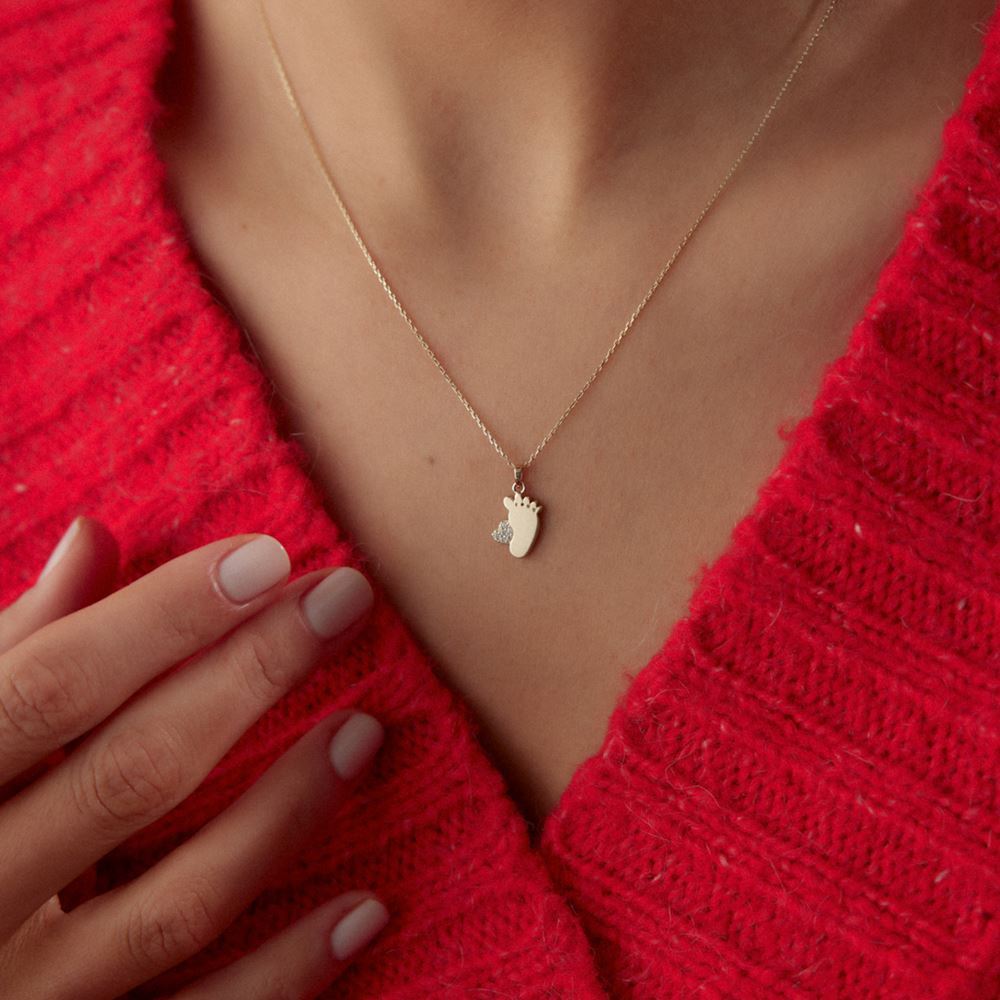 Ayak İzi Kolye: Ayak izi figürüyle tasarlanan kolye, kişisel ve anlamlı bir stil sunar.