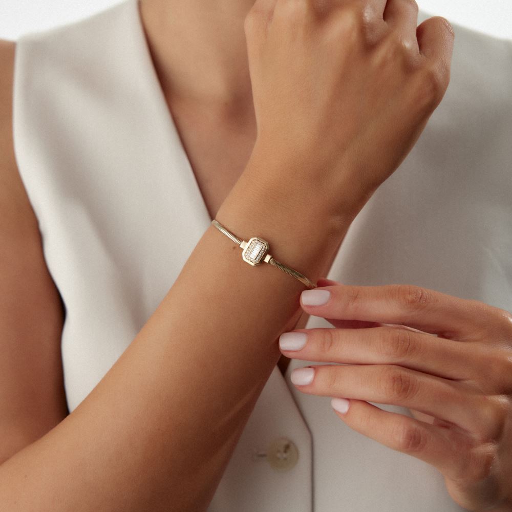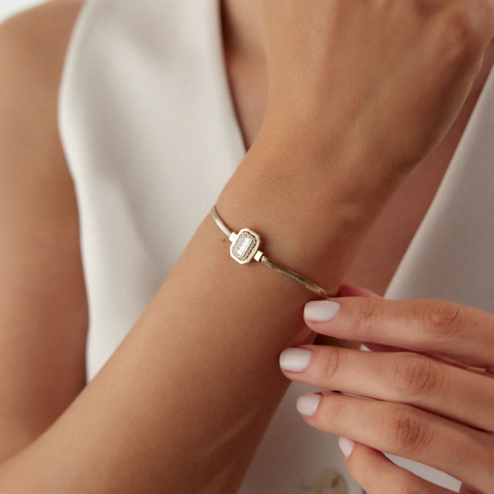 Baget Balıksırtı Bileklik: Baget taşlarıyla süslenmiş balıksırtı bileklik, modern ve şık bir aksesuar arayanlar için ideal.