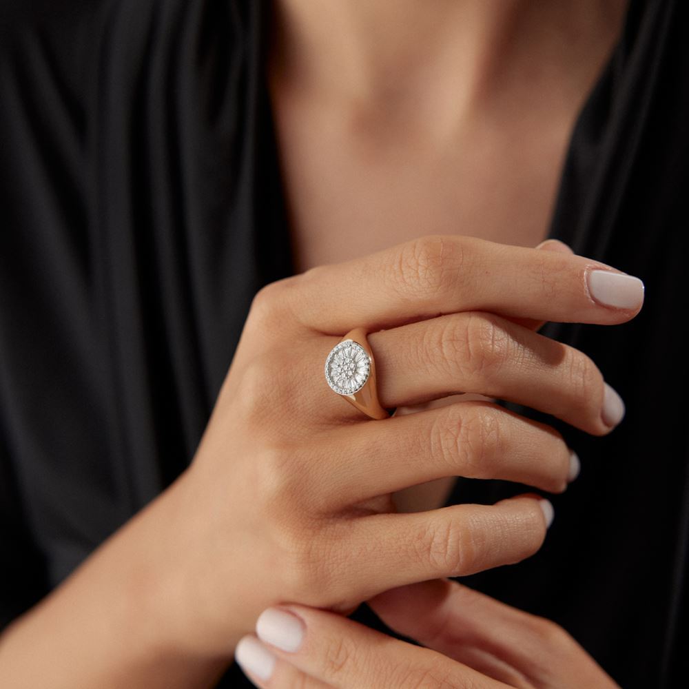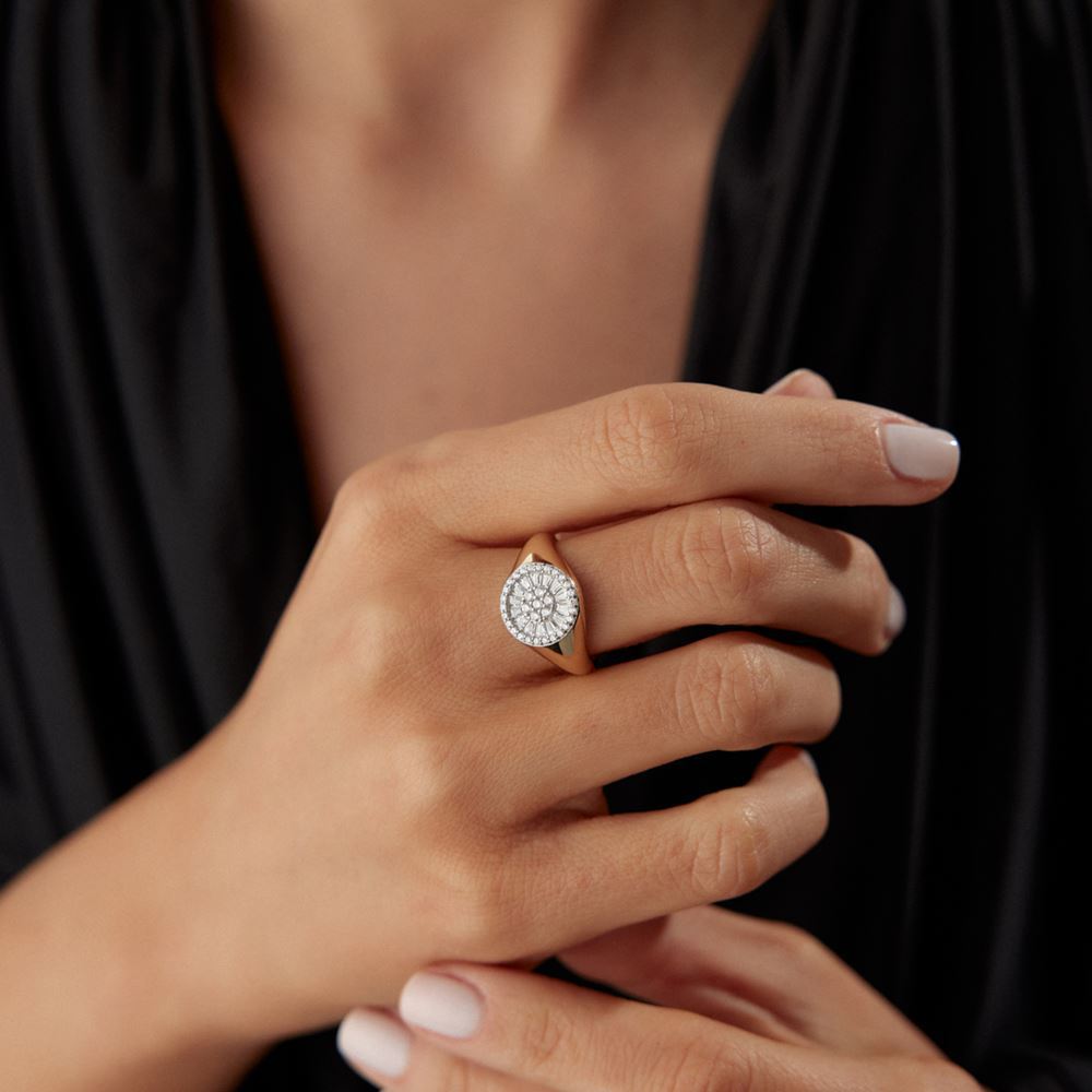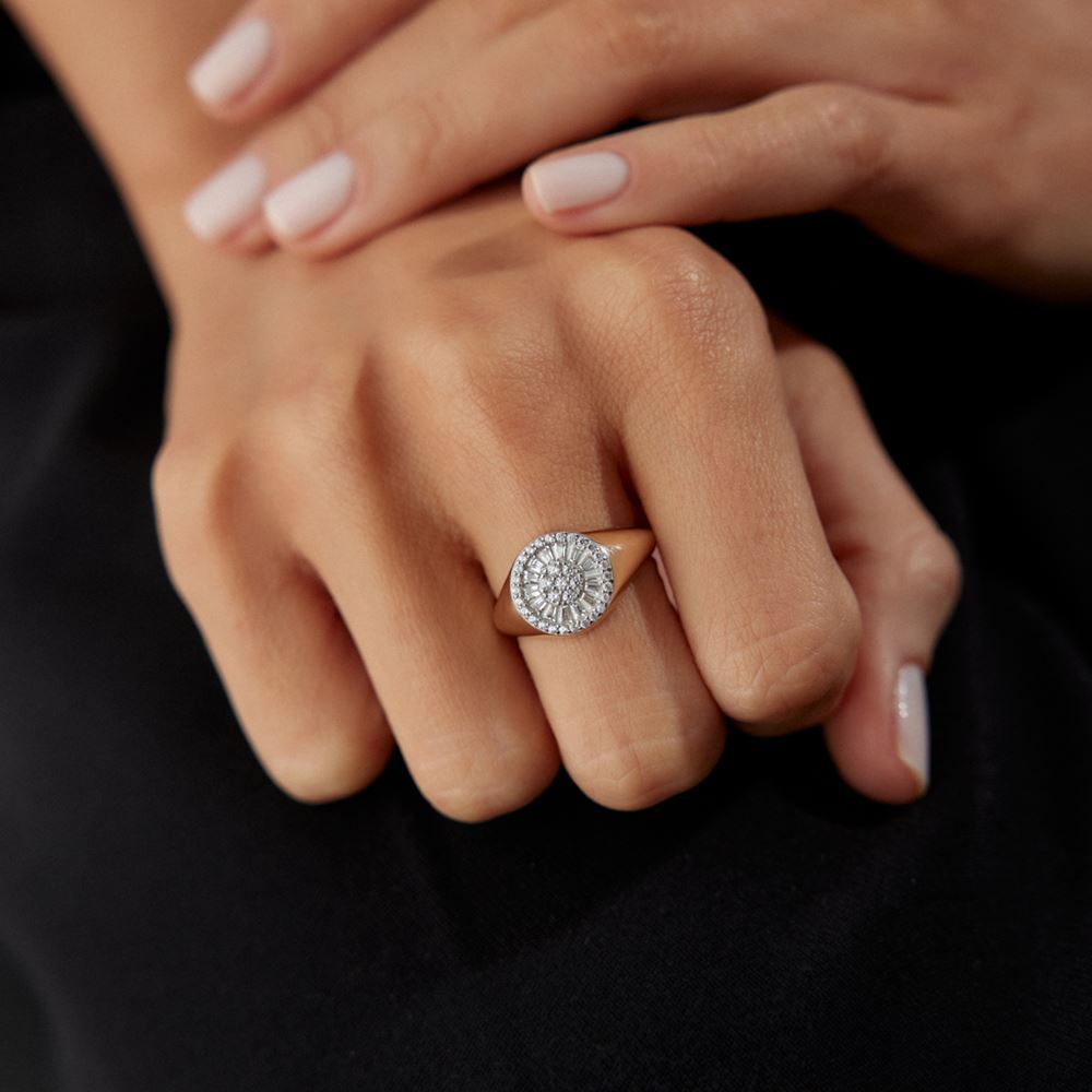 Daire formundaki baget taşlı yüzükler, özel günlerinize şıklık katacak mükemmel bir seçim. E-Goldia'da her zaman kaliteli tasarımlar.