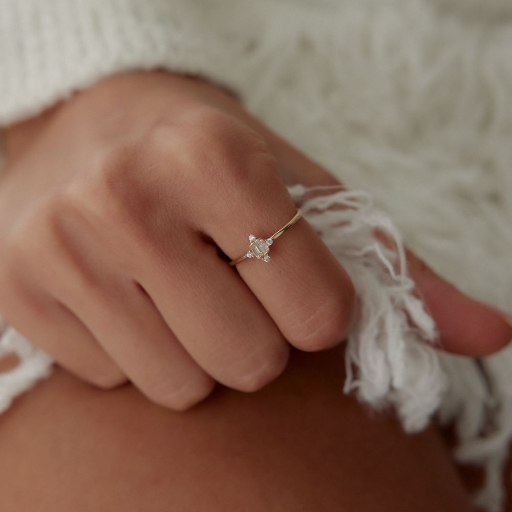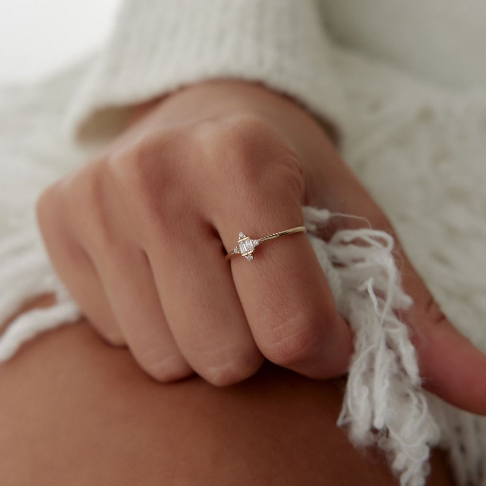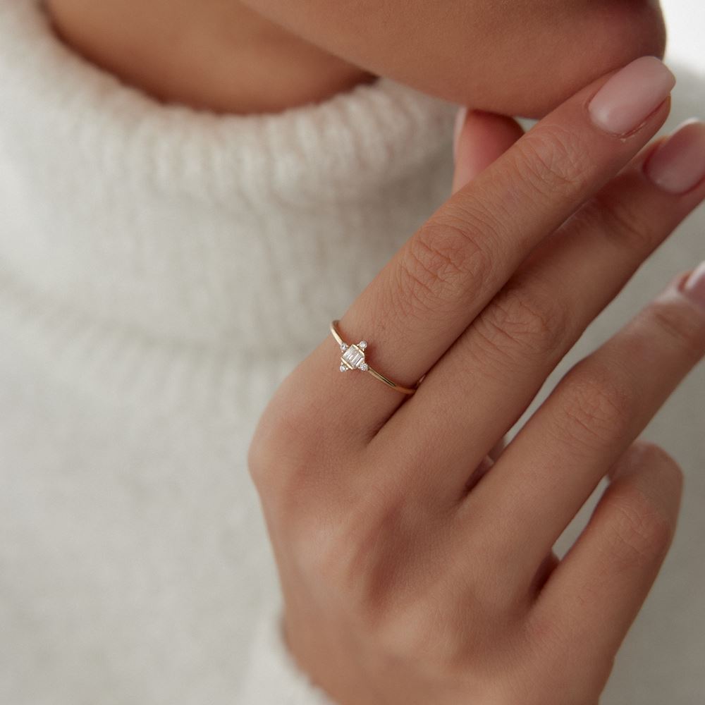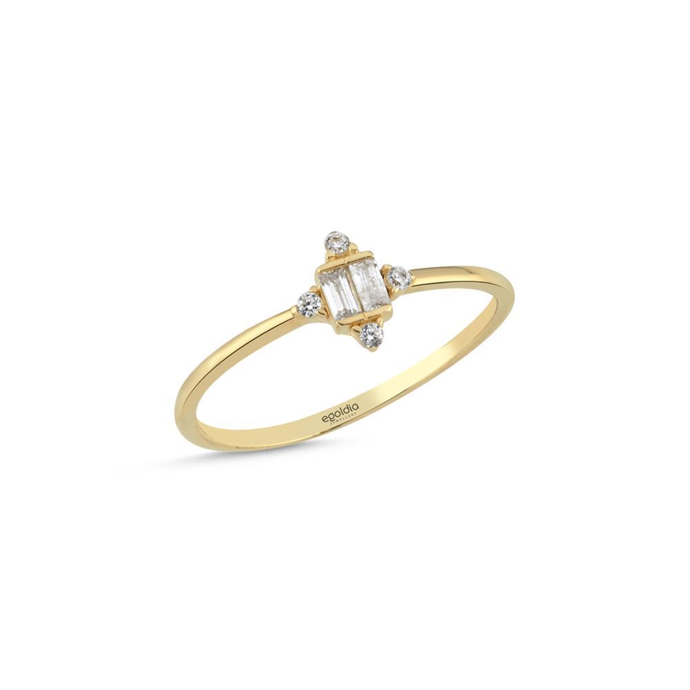 Baget taşlı yüzük, klasik ve zamansız tasarımıyla E-Goldia Jewellery koleksiyonlarında sofistike bir dokunuş sunuyor.