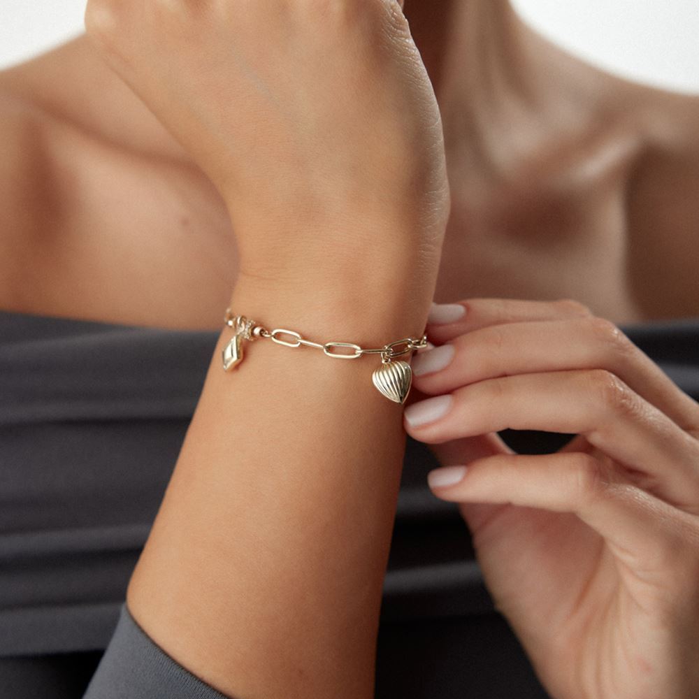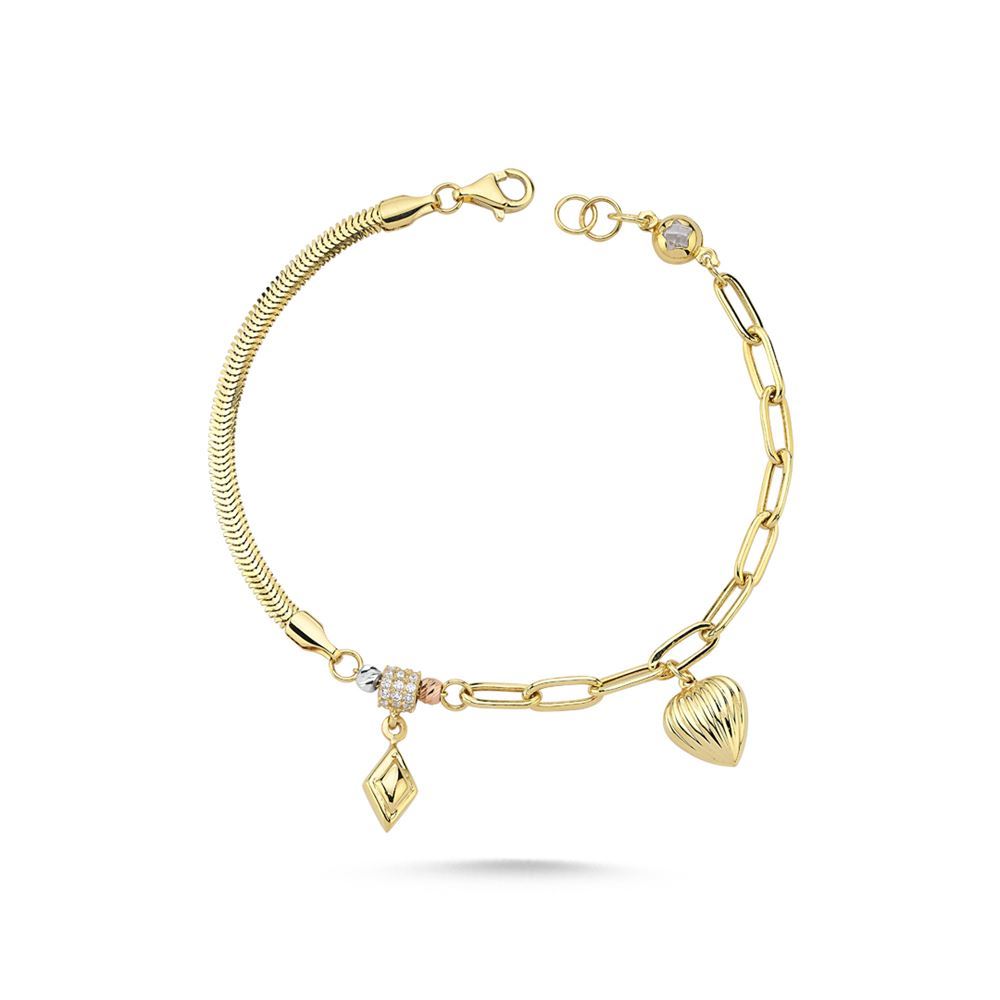 Balık Ve Halka Zincir Kalp Bileklik: Balık ve halka zincirli kalp bileklik, şıklığı ve zarafetiyle stilinize farklılık katar.