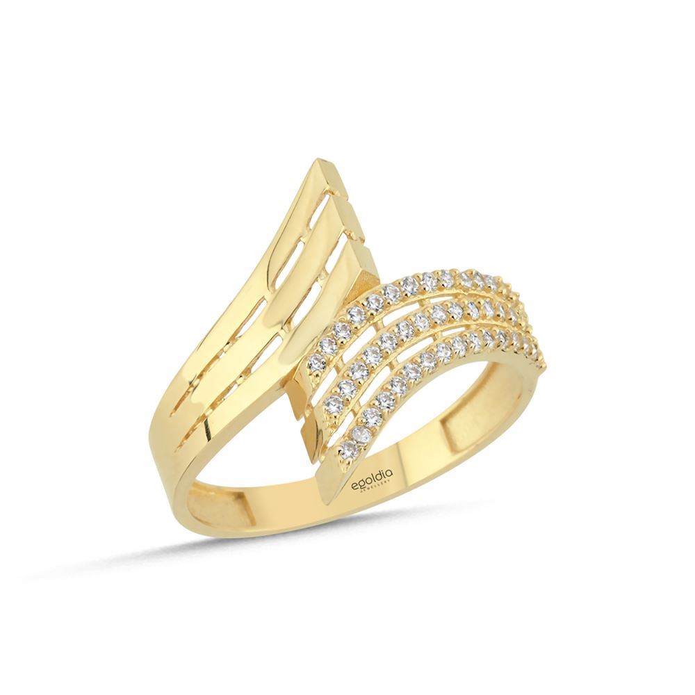 Çizgi Dalga Tasarım Yüzük, dalga formunun akıcı estetiği ile 14 ayar altının parlaklığını birleştiriyor. Dinamik ve modern duruşuyla günlük kullanıma uygun bu yüzük, kendiniz ya da sevdikleriniz için anlamlı bir zarafet sunar.