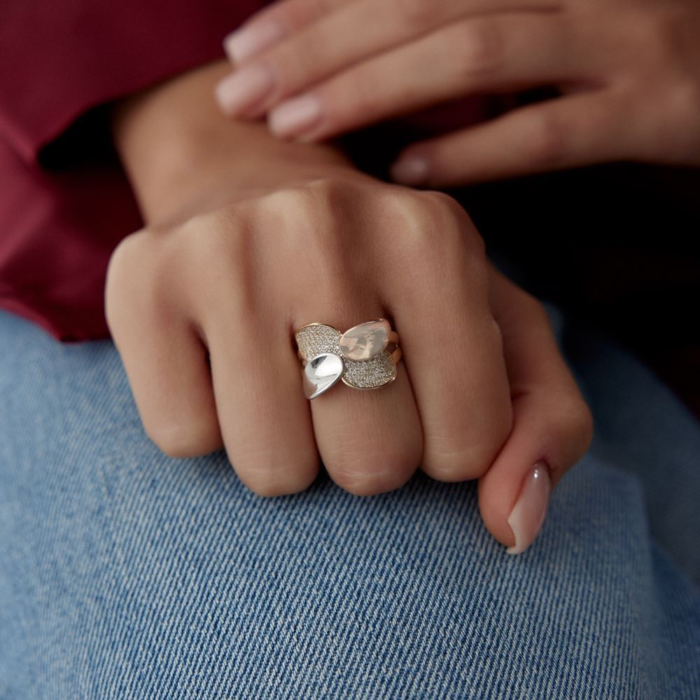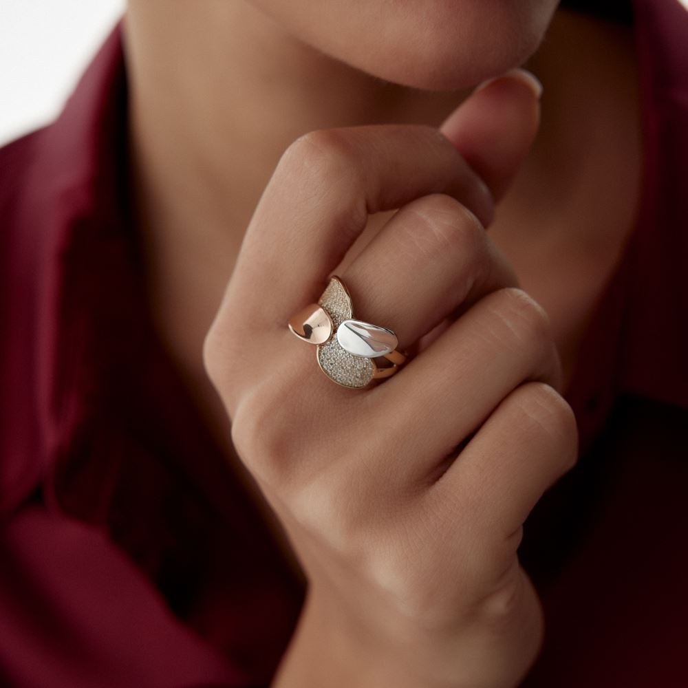 Dörtlü Yaprak Taşlı Üç Renk Yüzük