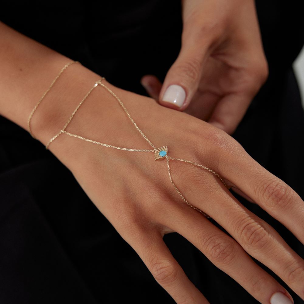 Firuze göz tasarım şahmeran, mistik ve şık tasarımıyla stilinize zarif bir dokunuş katar. E-Goldia koleksiyonunda.