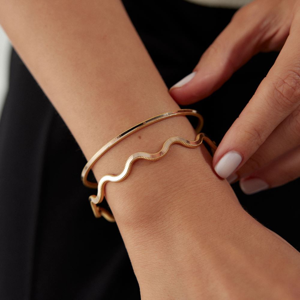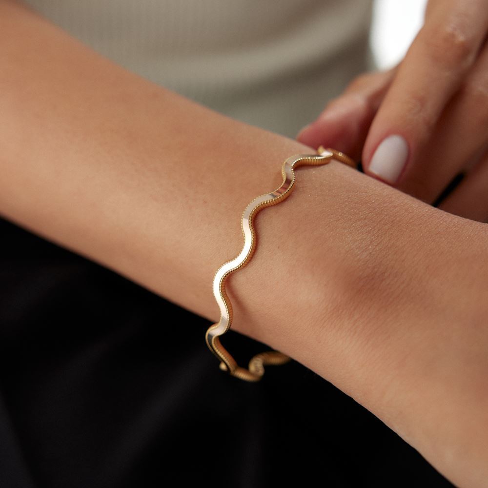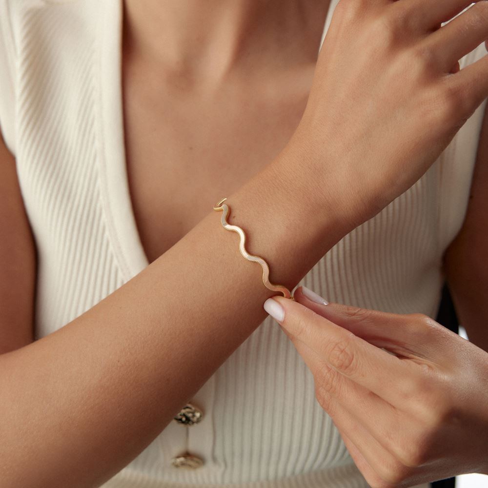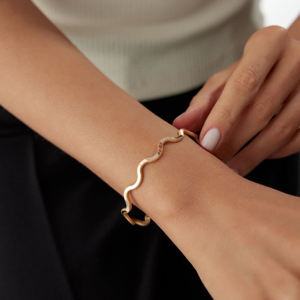Modern tasarımı ve zarif detaylarıyla Füzyon Ajda Zikzak Bilezik, stilinizi tamamlayan ışıltılı bir dokunuş sunar.