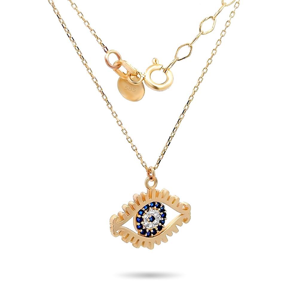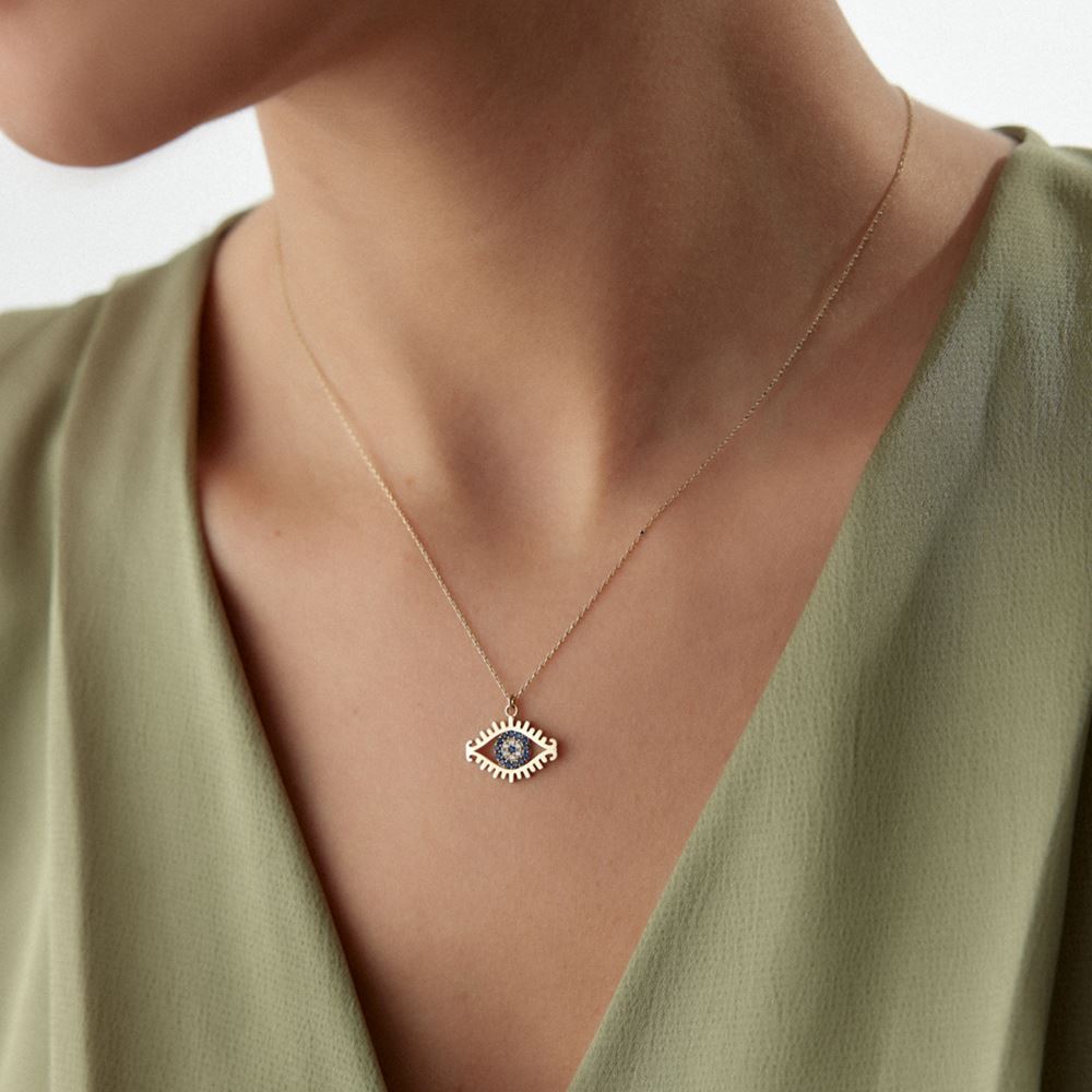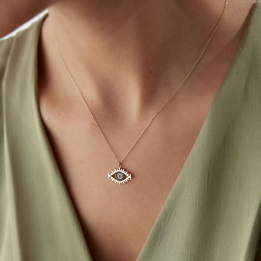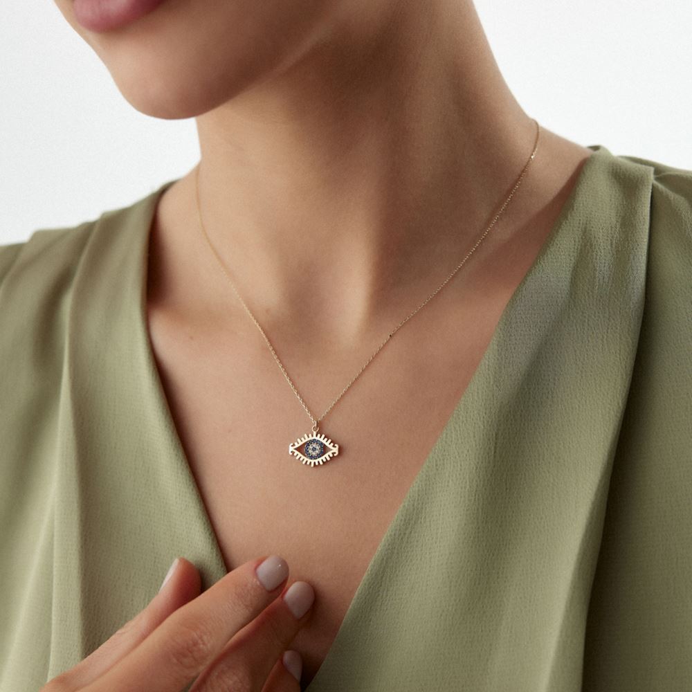 Göz Mavi Taşlı Kolye: Mavi taşlı göz kolye, zarif tasarımıyla stilinizi tamamlar.