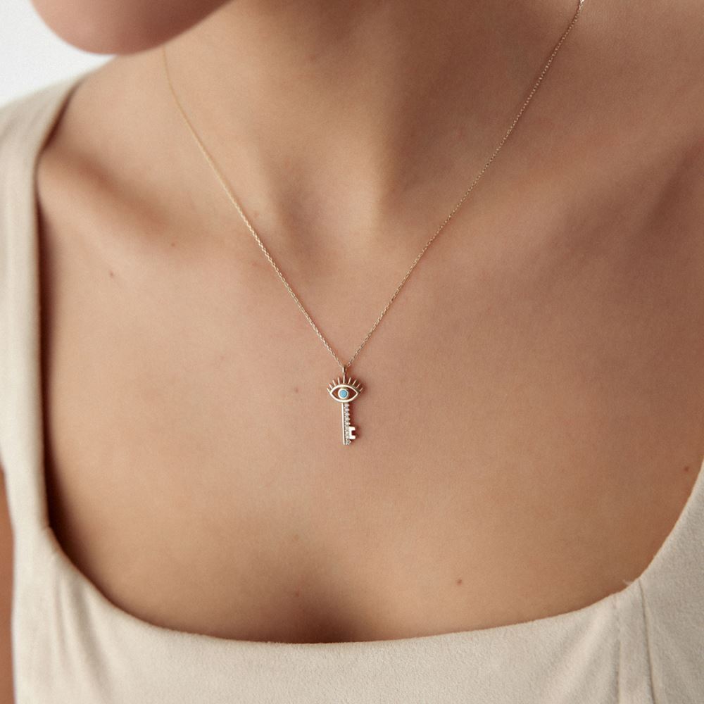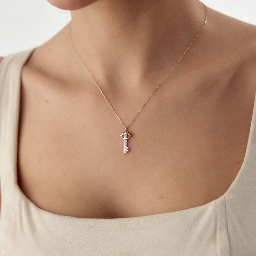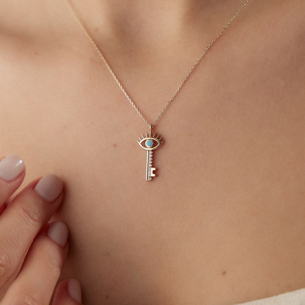 Göz figürlü anahtar tasarımıyla anlam dolu ve şık bir aksesuar seçeneği.