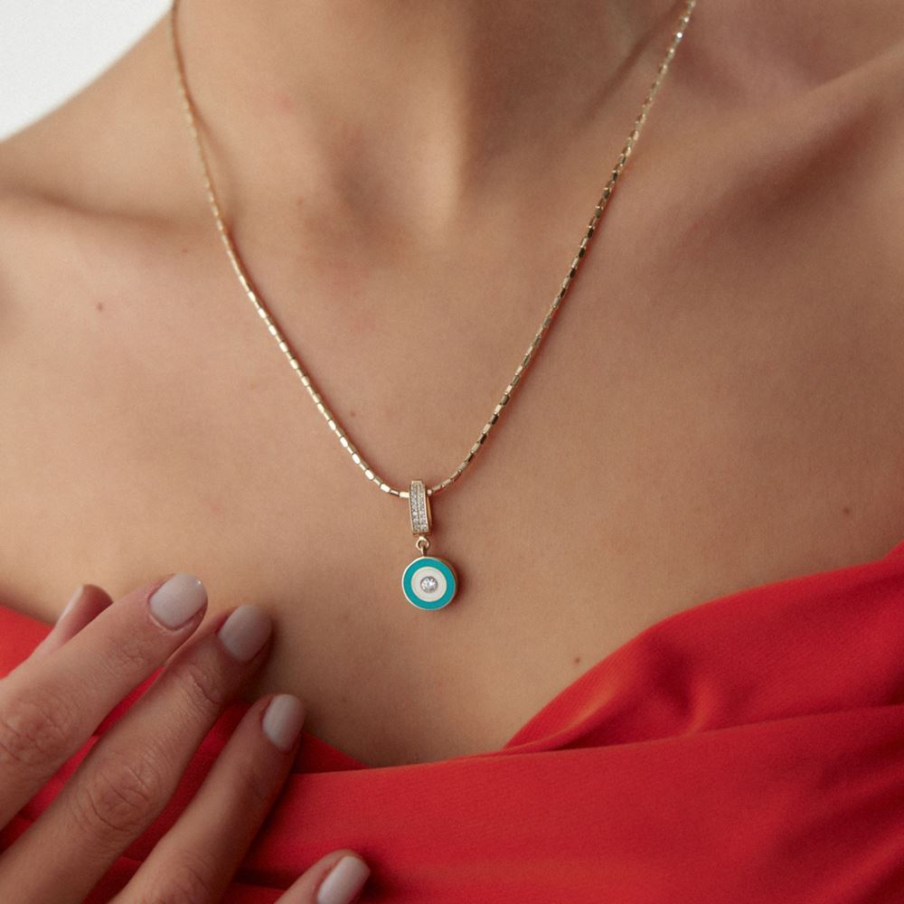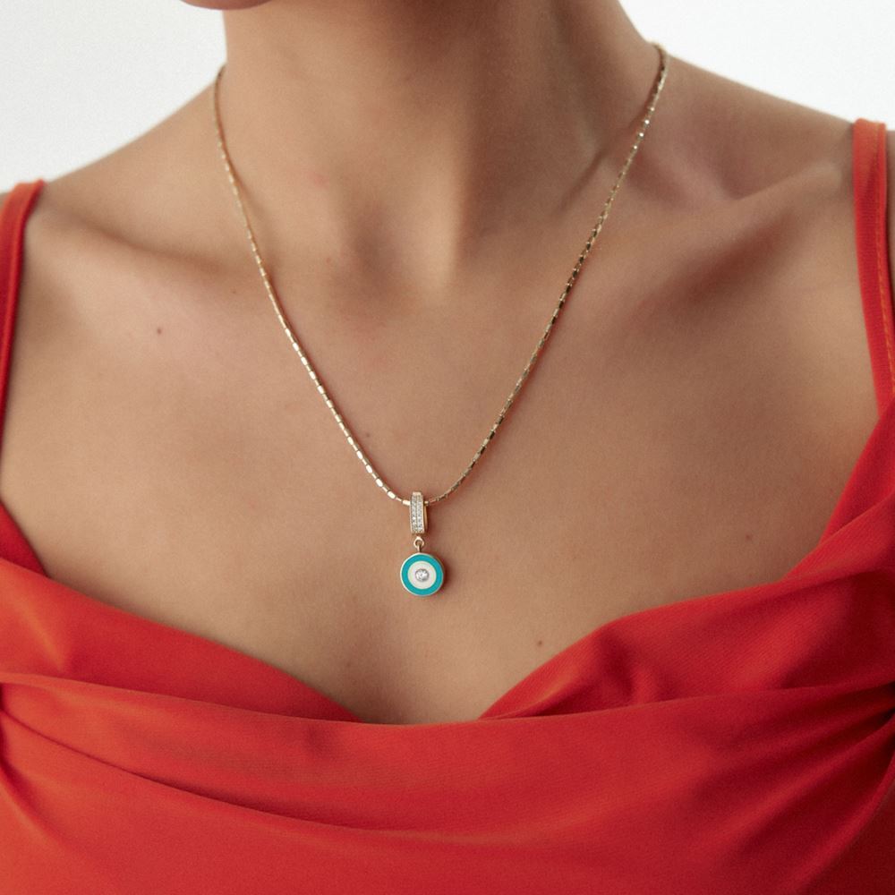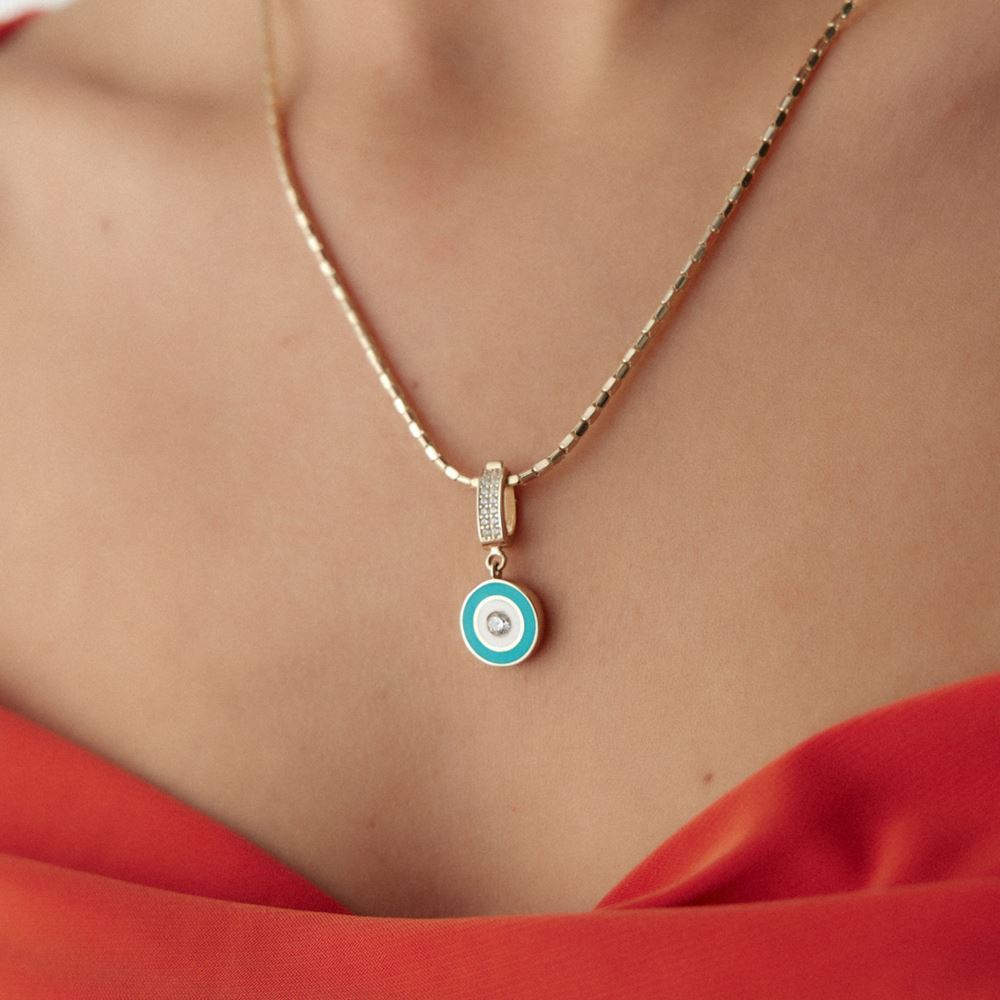 E-Goldia'nın göz turkuaz beyaz mineli charm kolye uçları, zarif tasarımlar ile şıklığınızı yansıtır. Özel anlar için mükemmel hediye.