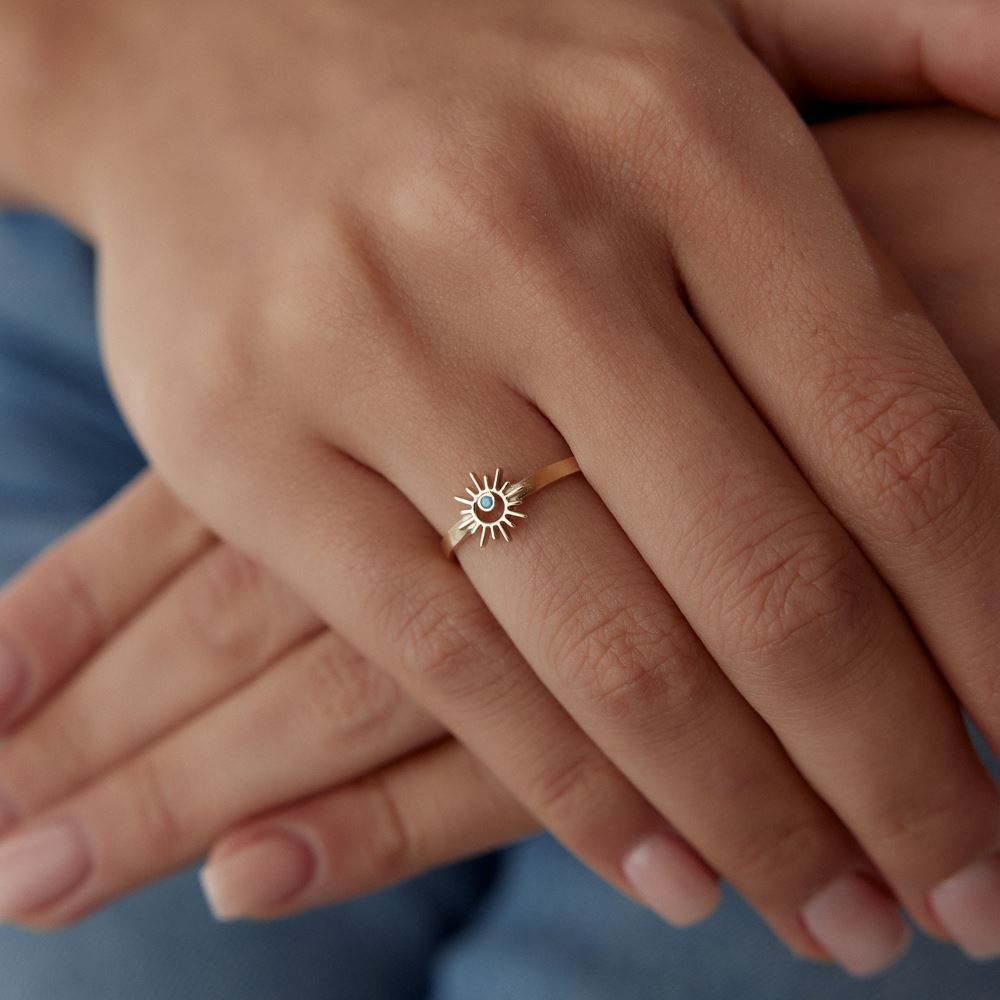 E-Goldia Jewellery’nin Güneş Firuze Taşlı Yüzük koleksiyonu, firuze taşlarının göz alıcı rengi ve güneş figürüyle şıklığı tamamlıyor. Altın işçiliğiyle öne çıkan bu yüzükler, enerjik ve sofistike bir tasarım sunuyor. Hem günlük kullanım hem de özel anlar için ideal olan bu yüzükler, stilinize renk katıyor. Online kuyumcu güvencesiyle bu eşsiz tasarımları keşfedin!
