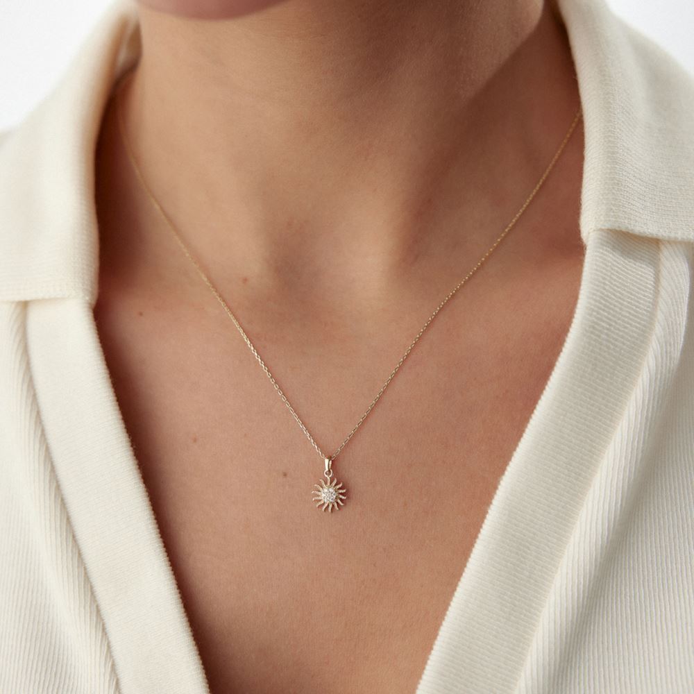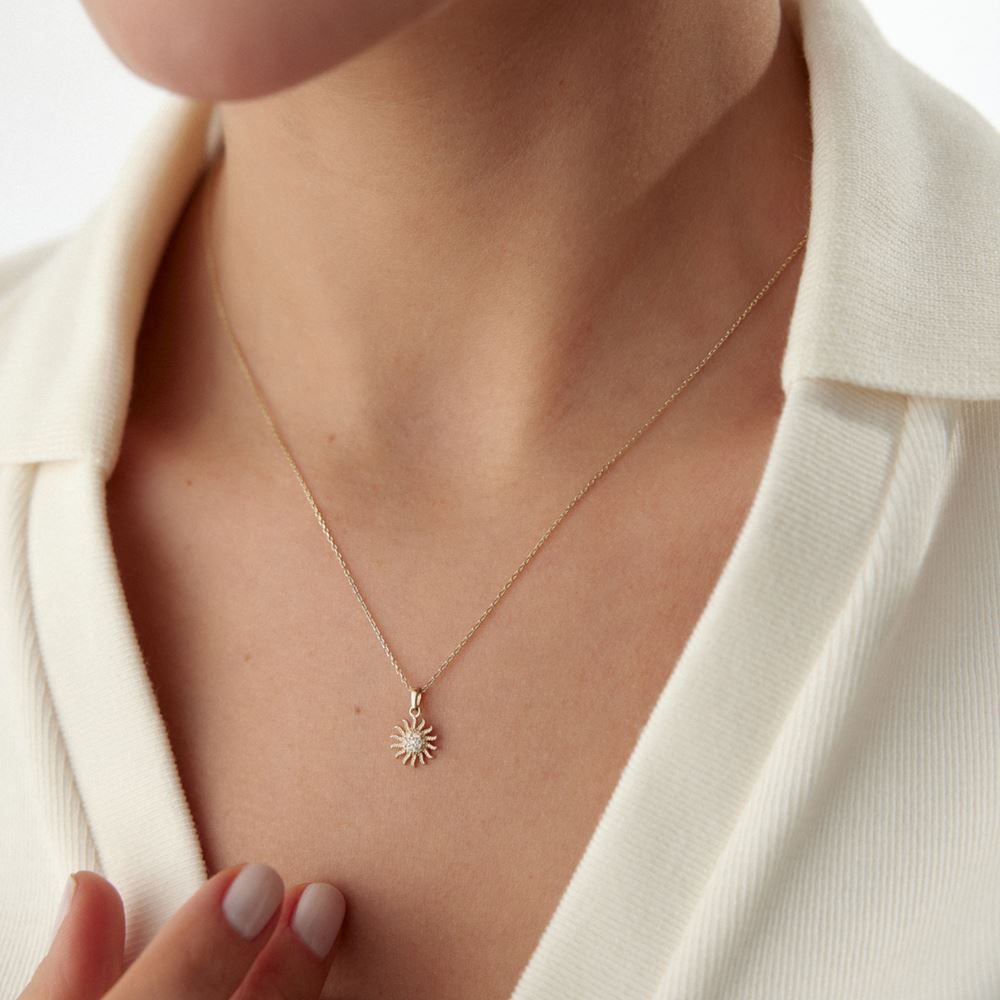 Güneş Tasarım Kolye güneş motifiyle enerjik ve dikkat çekici bir tasarım sunar.