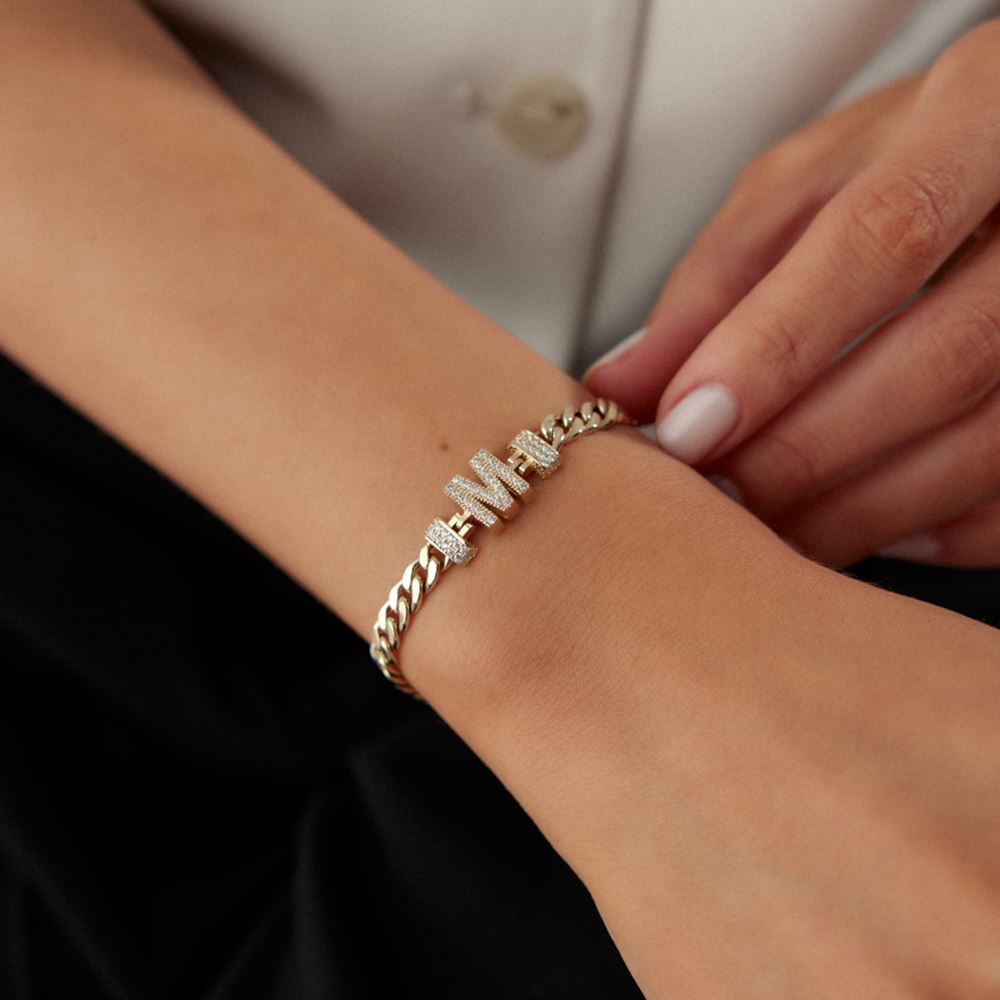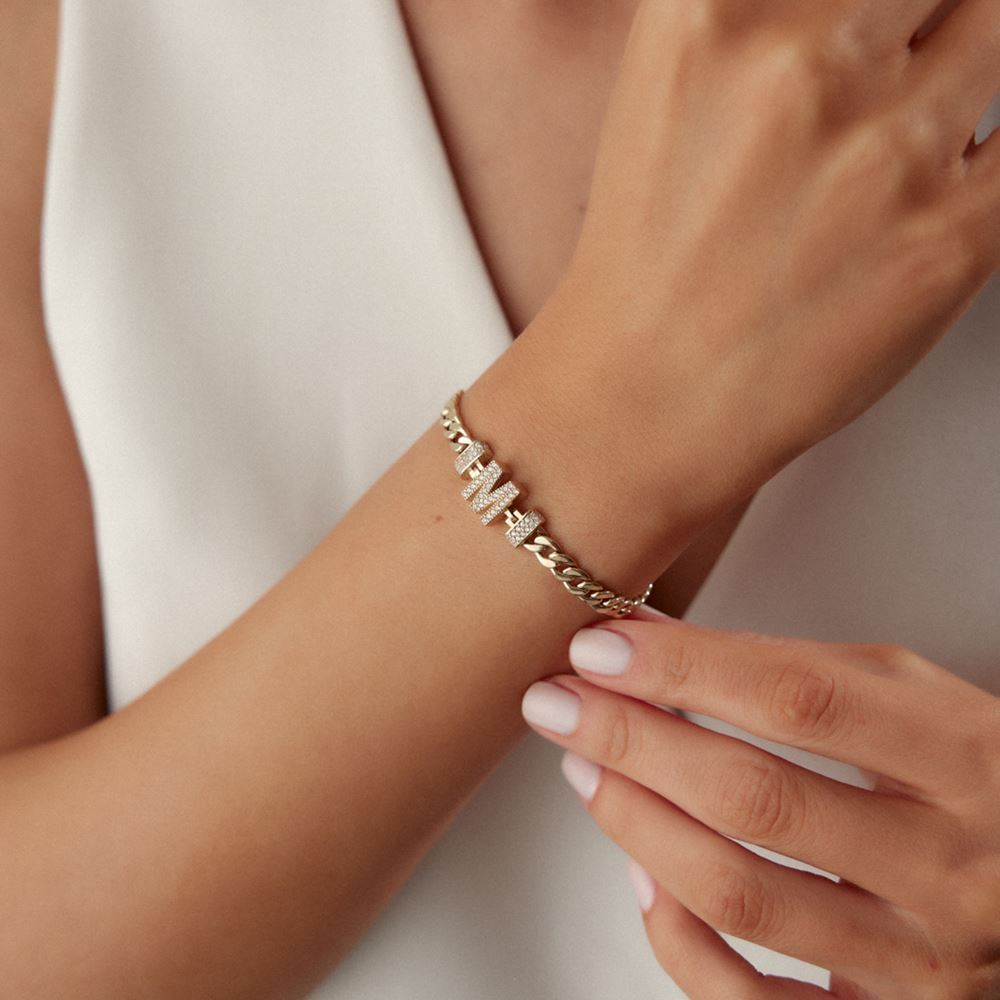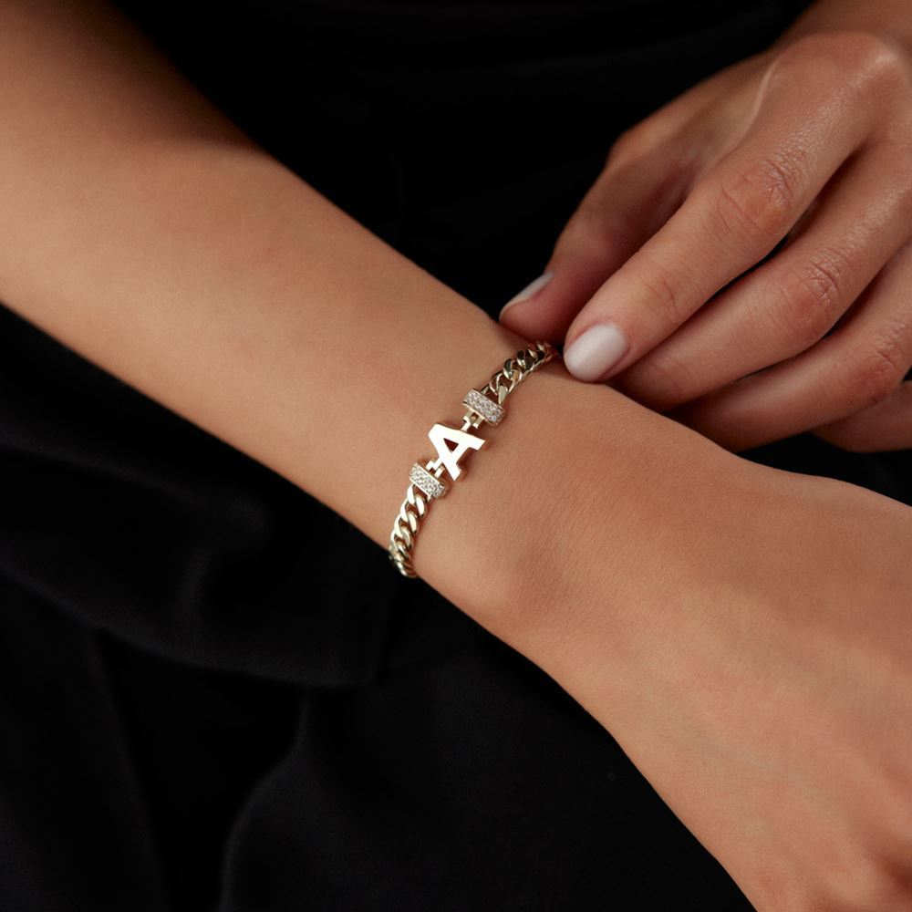 Gurmet Harfli Taşlı Bileklik: Gurmet harfli taşlı bileklik, zarif taş detaylarıyla stilinizi taçlandırır.