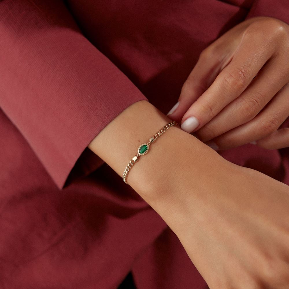 Gurmet Yeşil Taşlı Bileklik: Gurmet tasarımıyla yeşil taş detaylı bileklik, zarif bir dokunuşla stilinizi tamamlar.