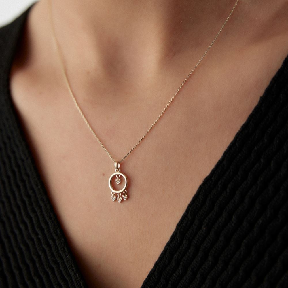 Halka Kalp Tasarımlı Kolye halka ve kalp detaylarıyla romantik bir tasarım sunar.