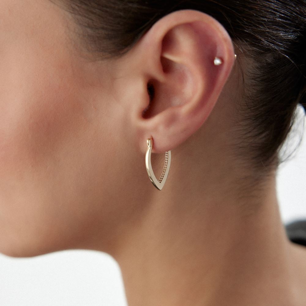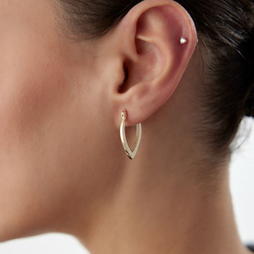 İnce işçilikle tasarlanmış halka küpe, her stile uygun şıklığıyla dikkat çeker.