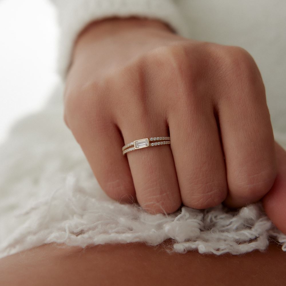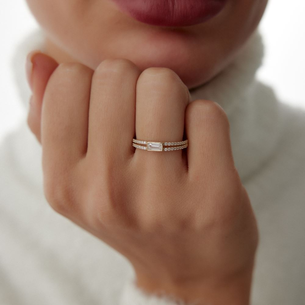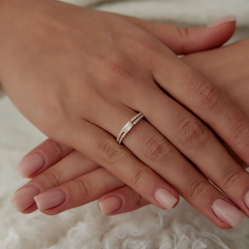 İki Sıra Taşlı Baget Yüzük baget kesim detaylarıyla sofistike bir şıklık sunuyor. Modern tasarımıyla dikkat çeken bu yüzükler, altın işçiliği ve göz alıcı parlaklığıyla her stilin vazgeçilmezi. Günlük kullanımdan özel davetlere kadar her anınıza uyum sağlayan bu özel modelleri, online kuyumcu güvencesiyle keşfedin ve tarzınızı tamamlayın!