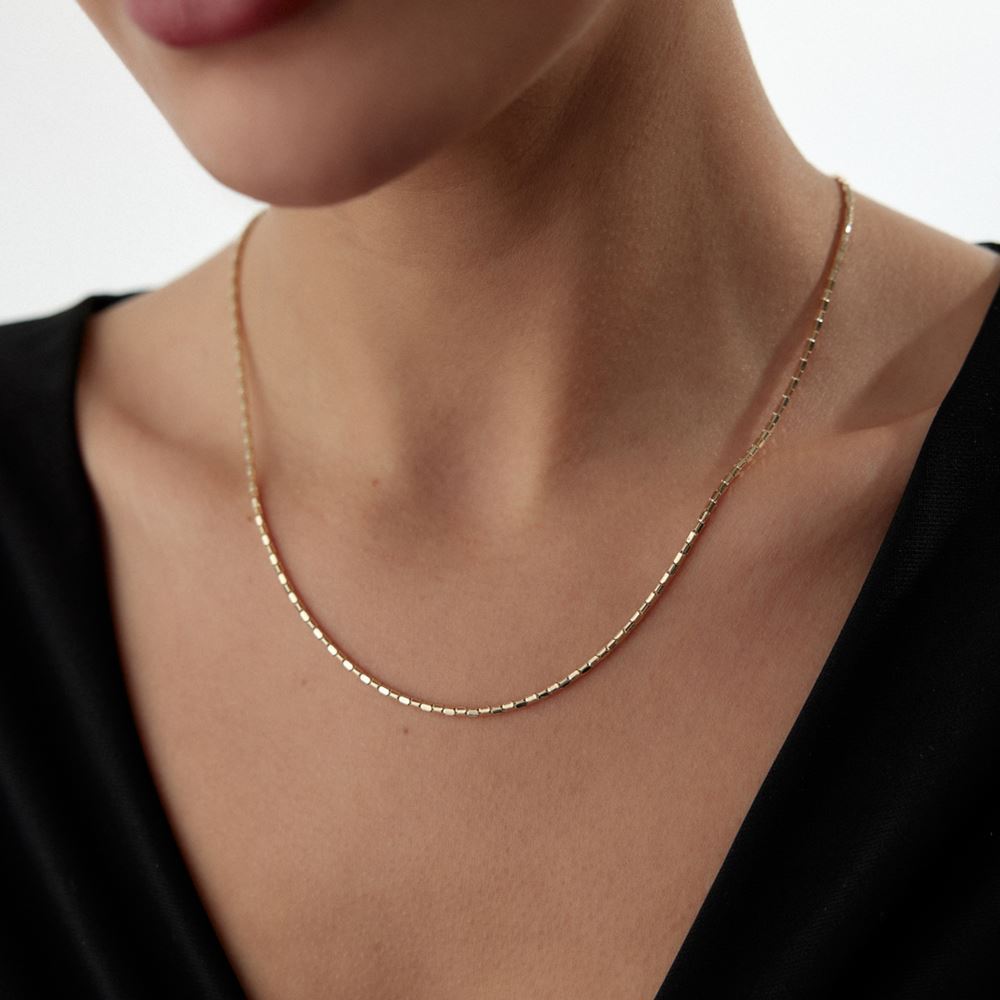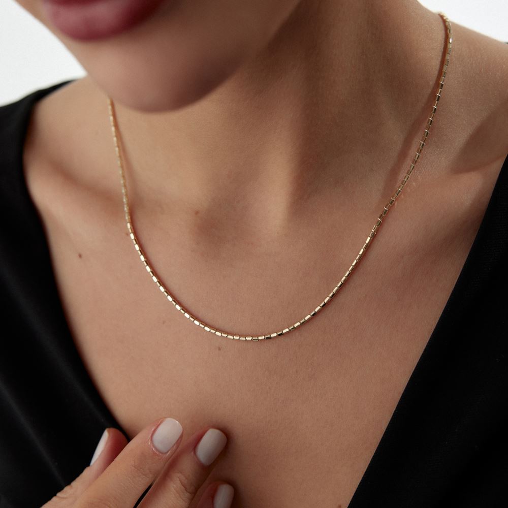 İtalyan Küp Sıralı Kolye 54 Cm zarif küp detayları ve akıcı formuyla klasik ve modern bir görünüm sunar.