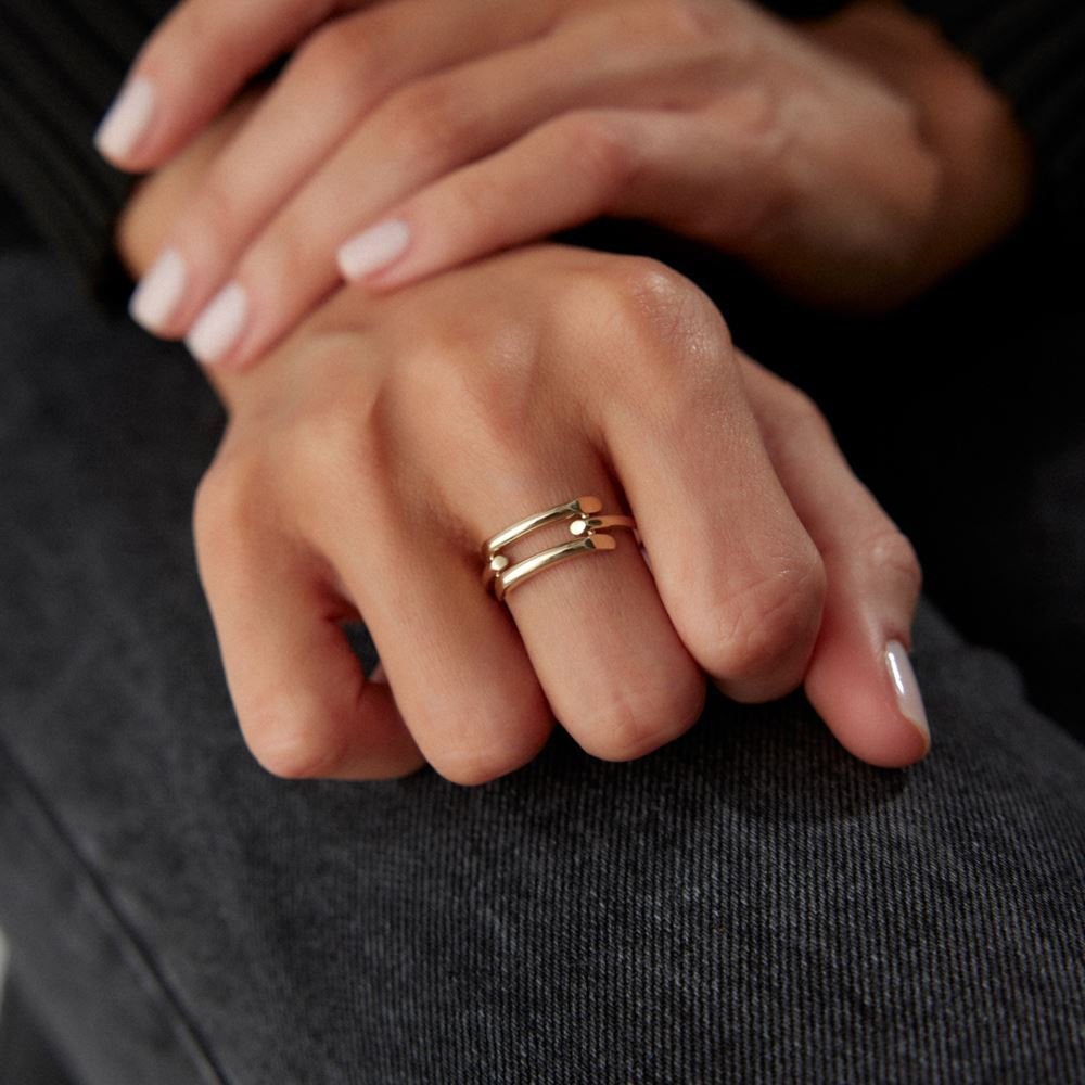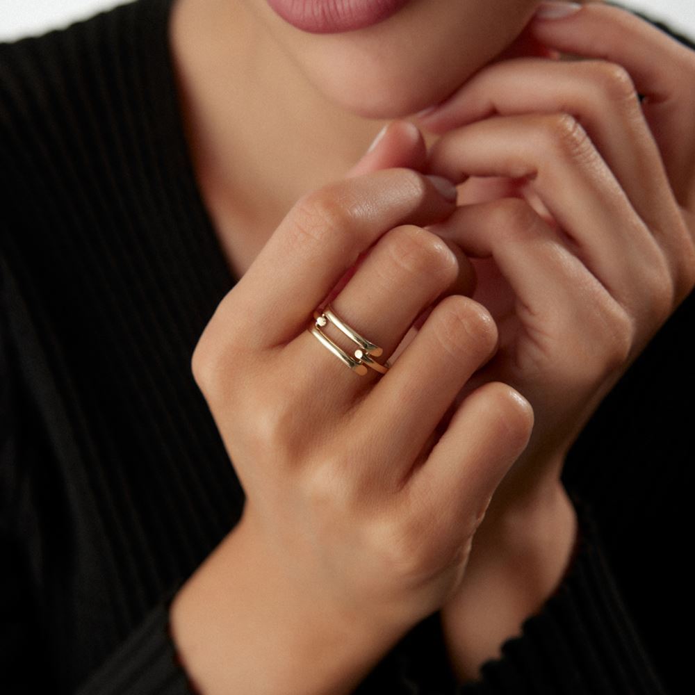 Kaburga ikili sade yüzük, minimal tasarımıyla zarif bir duruş sergiler.