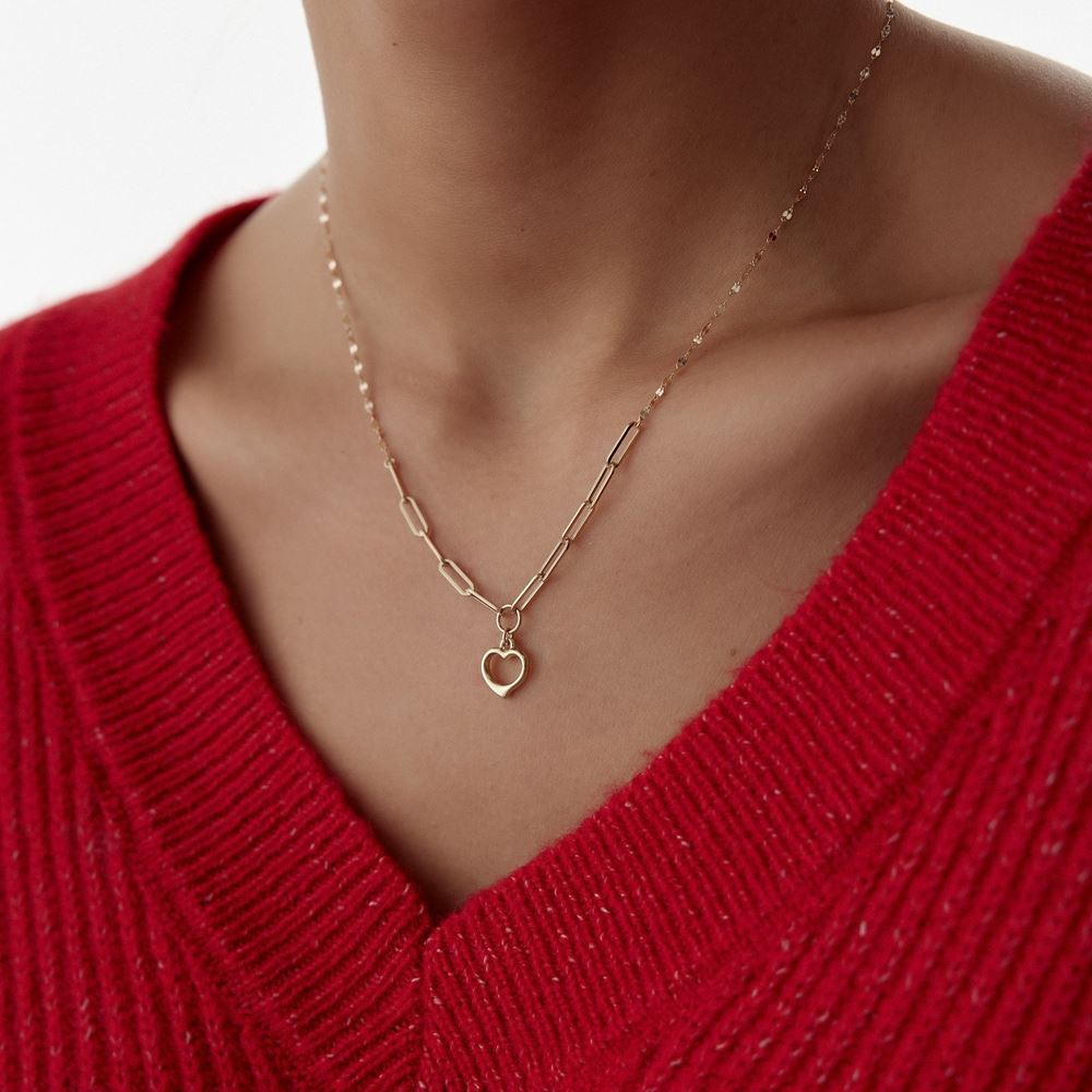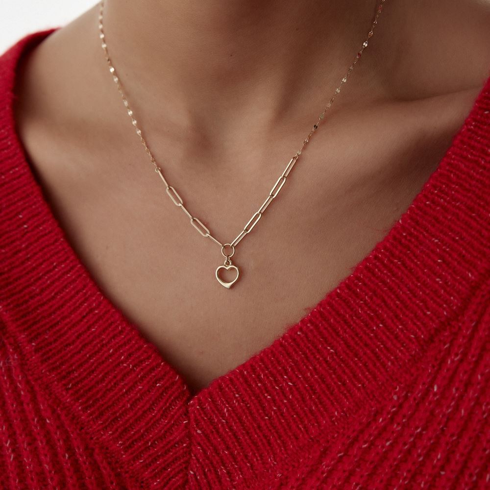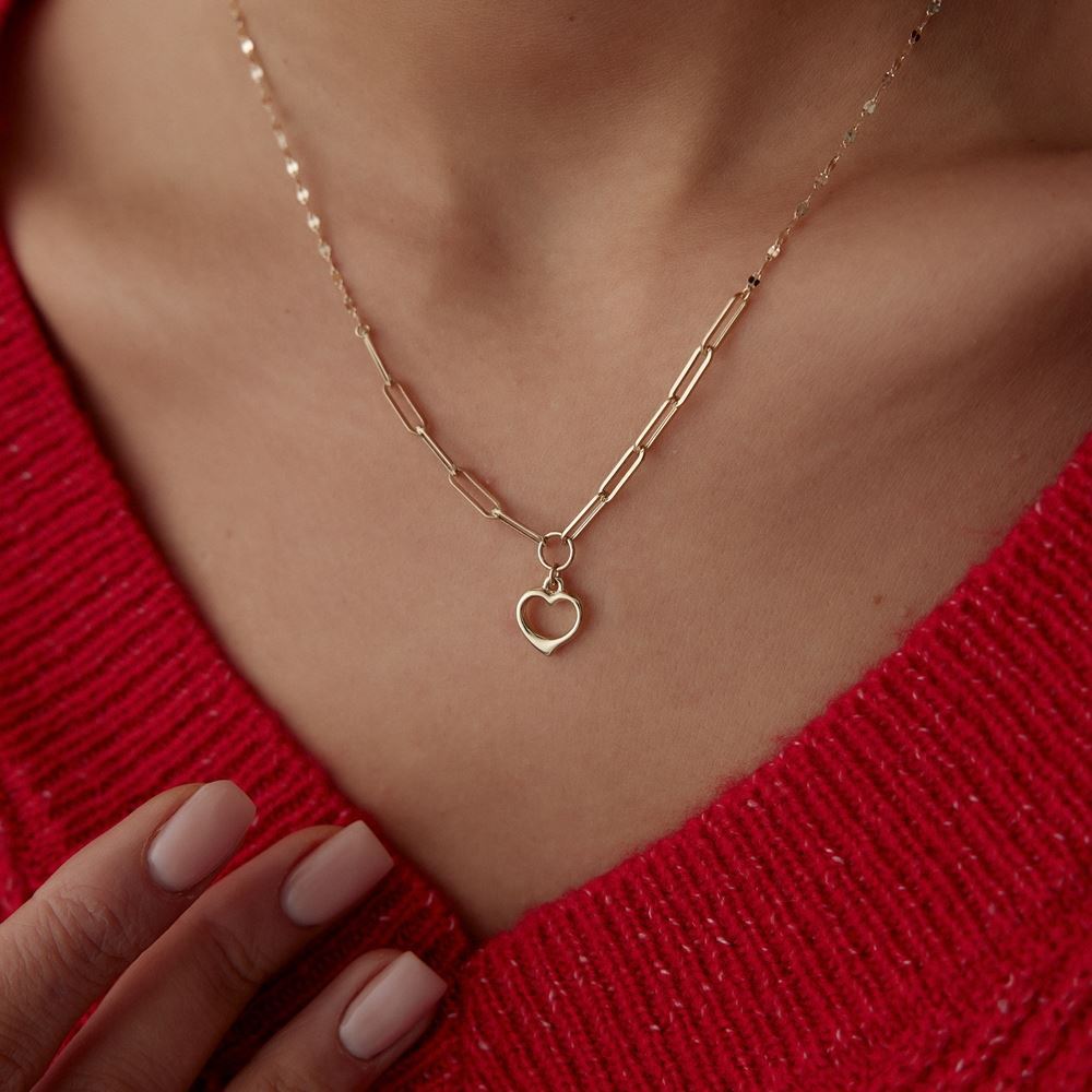 Kalp ataç pullu taşlı kolye, aşk ve zarafeti bir araya getirerek E-Goldia Jewellery farkıyla parlıyor.