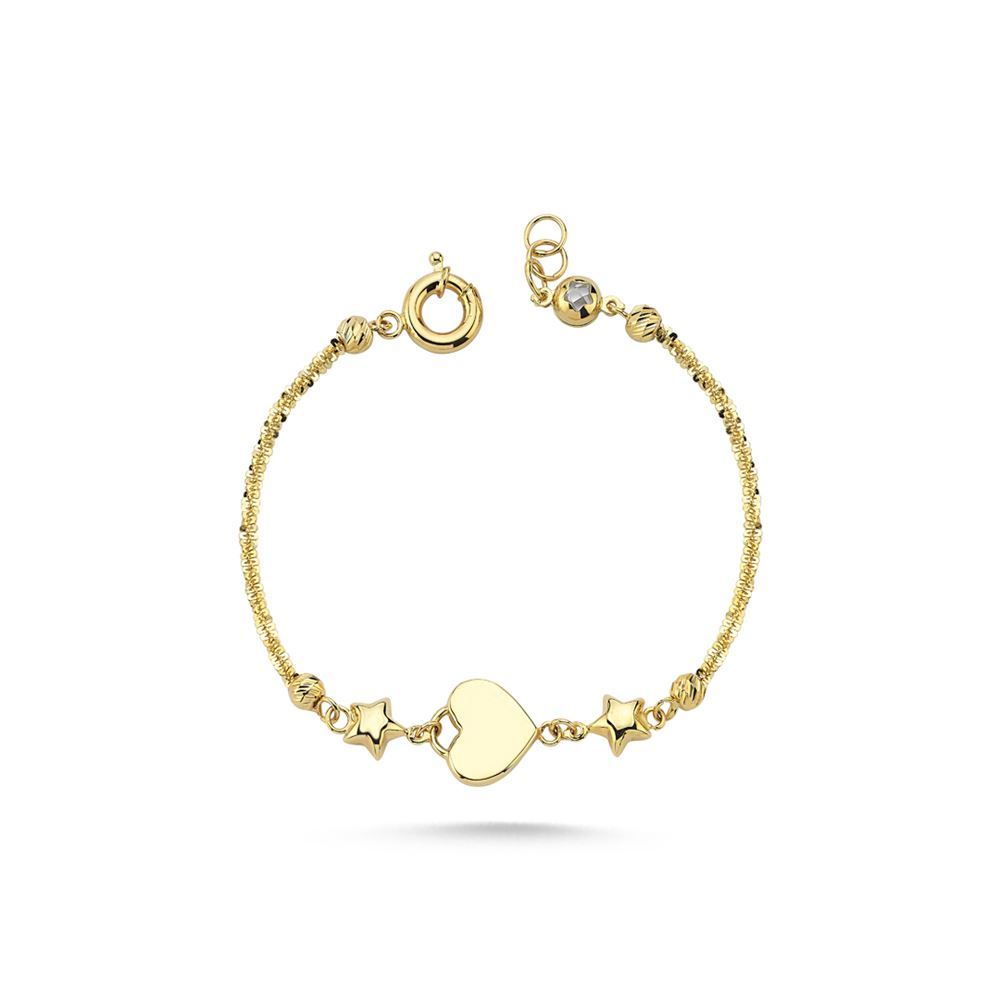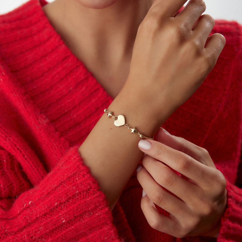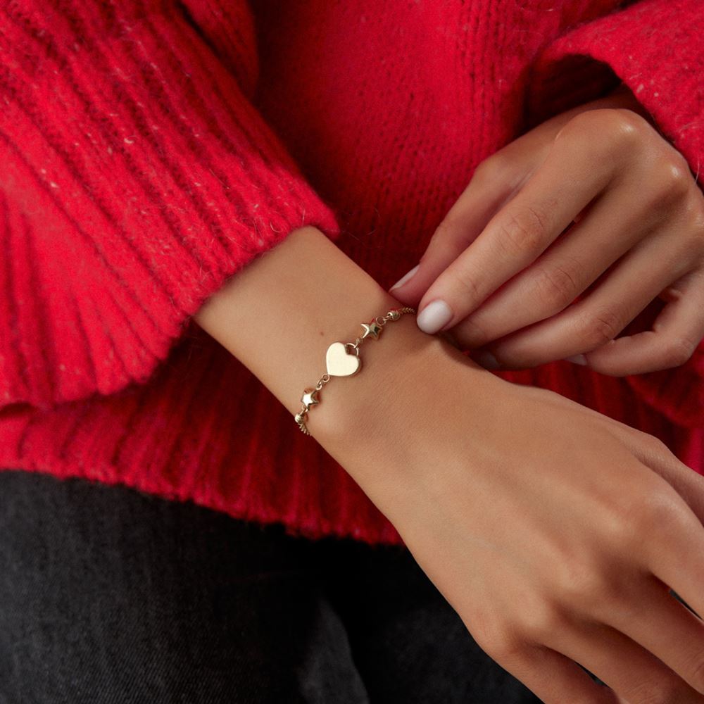 Kalp Yıldız Kalemli Top Bileklik: Kalp ve yıldız motifleriyle kalemli tasarım top bileklik, zarif bir görünüme sahip.