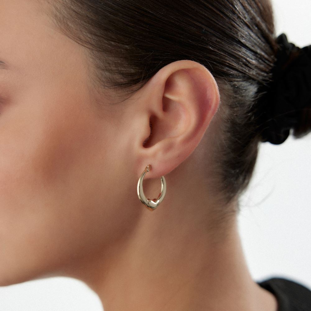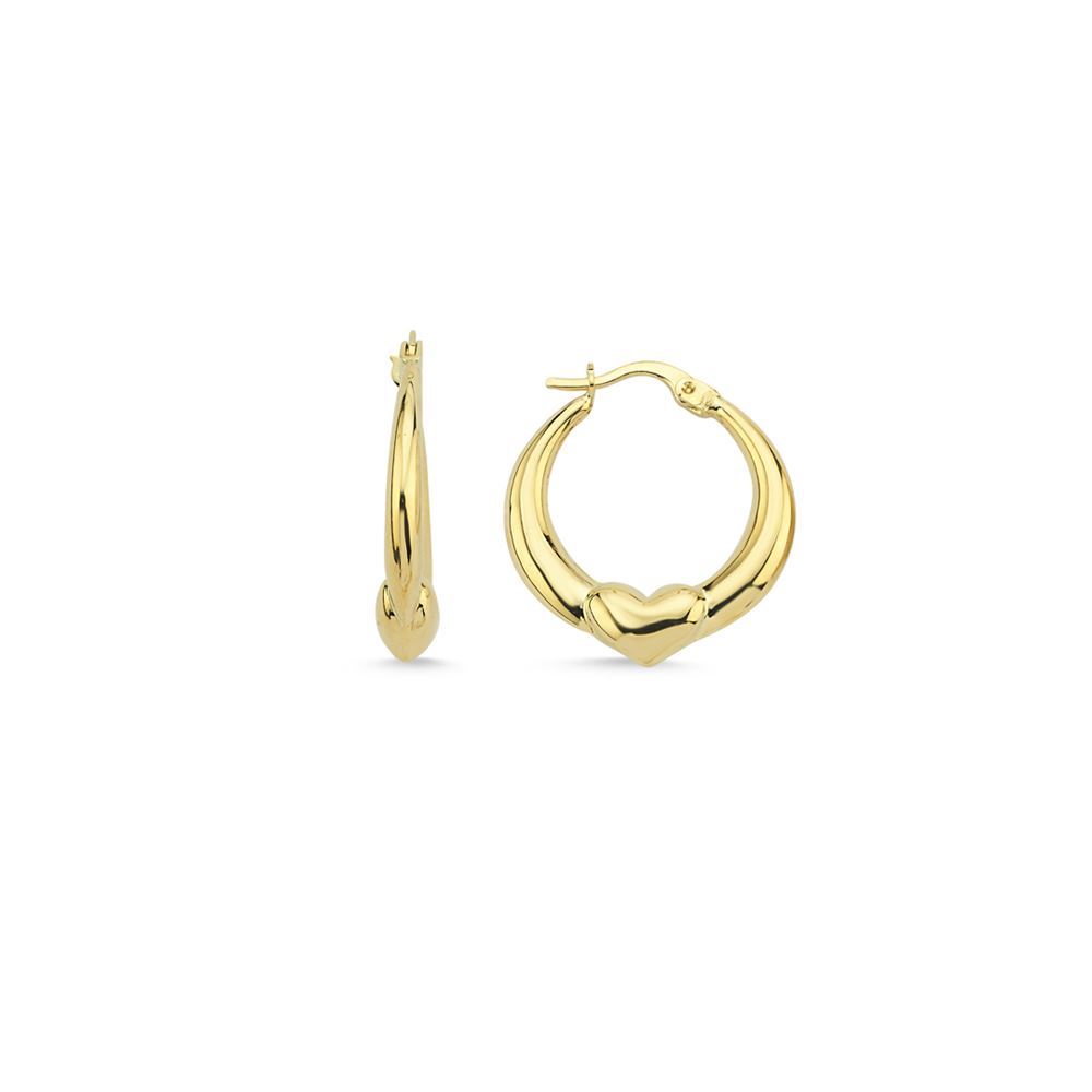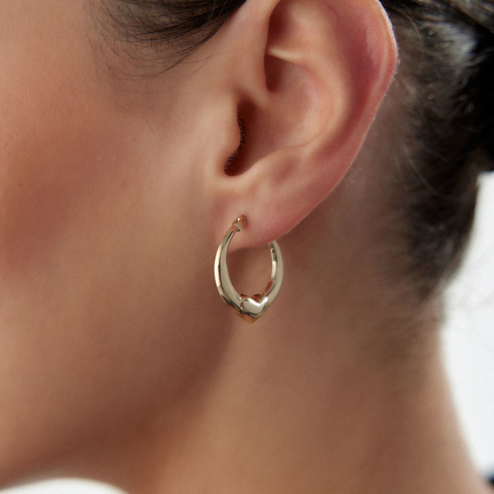 Kalpli Sade Halka Küpe: Zarif bir kalp detayıyla tasarlanmış sade halka küpe, feminen ve modern bir seçimdir.