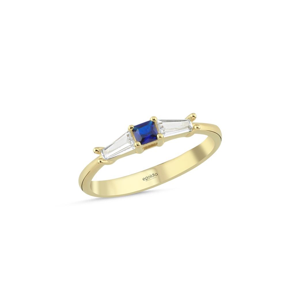Kare Tasarım Baget Renkli Taşlı Yüzük