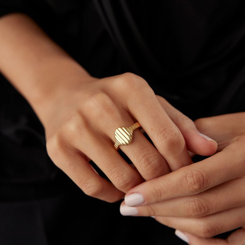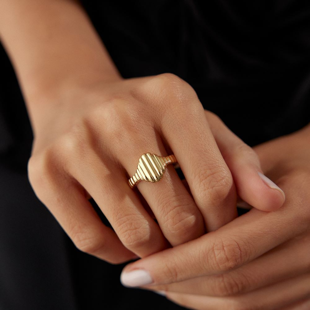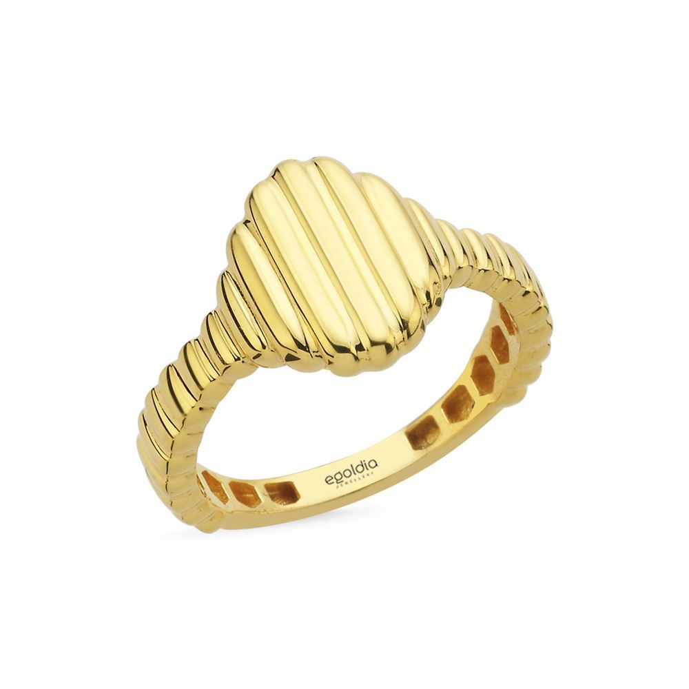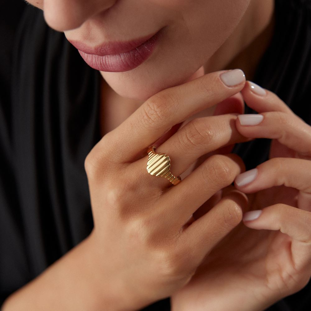 Kırmızı kaburga detaylı yüzük, cesur ve dikkat çekici bir tasarım sunar.