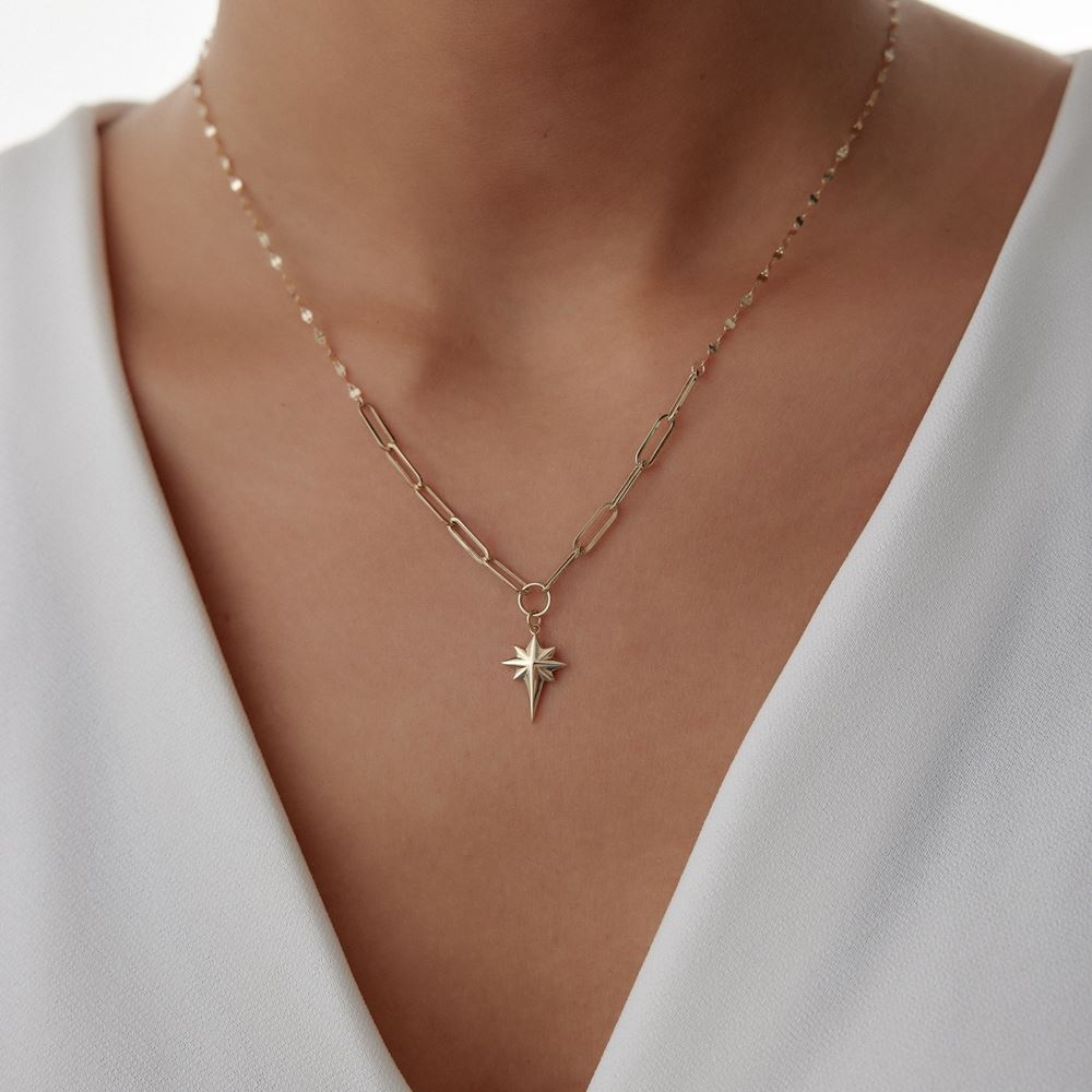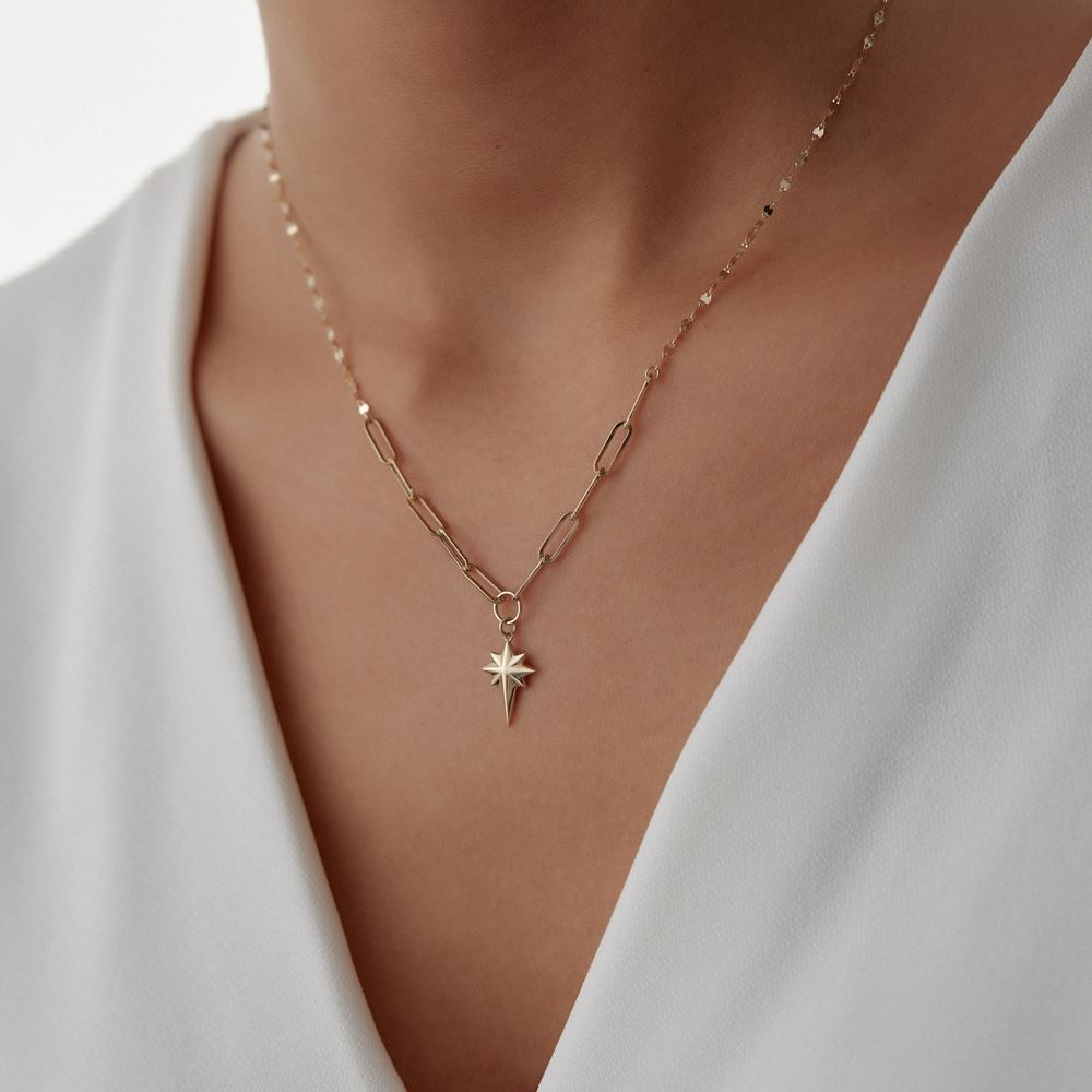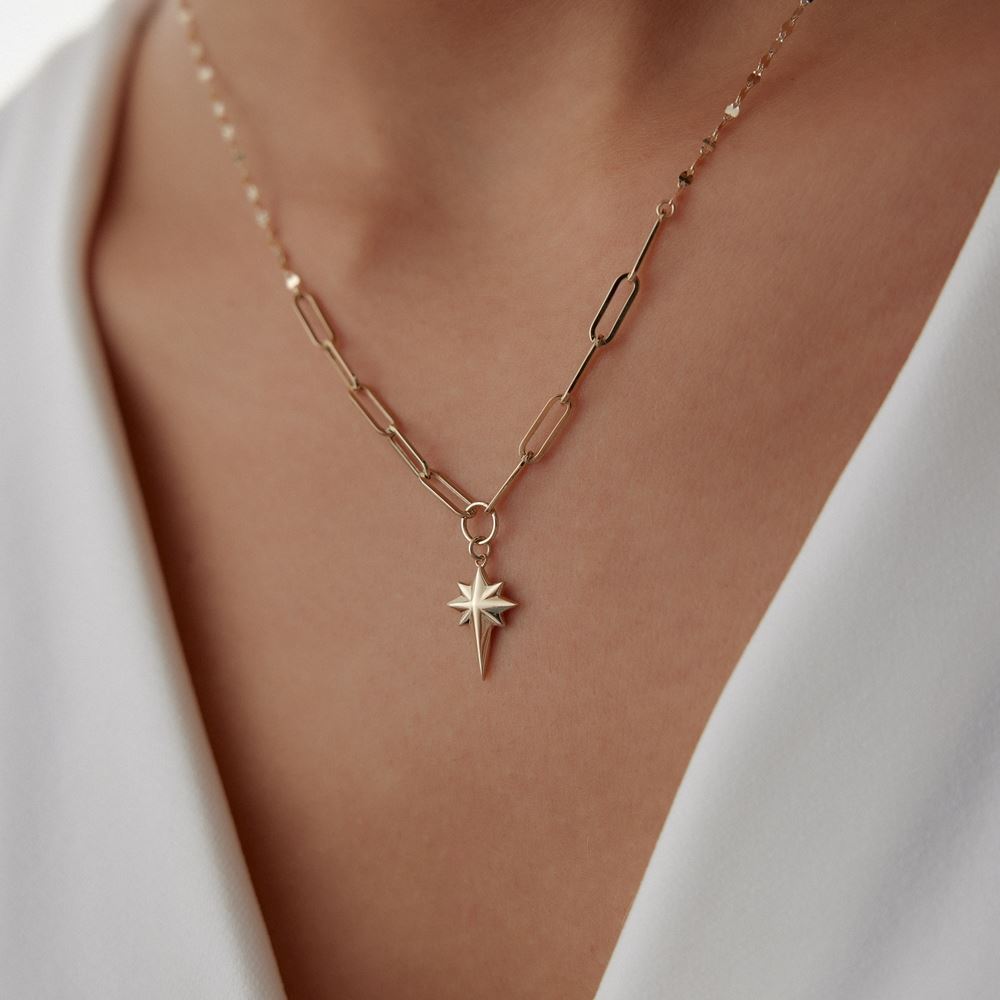 Kutup yıldız kolye, anlamlı tasarımı ve zarif detaylarıyla E-Goldia Jewellery koleksiyonunun gözde parçalarından.