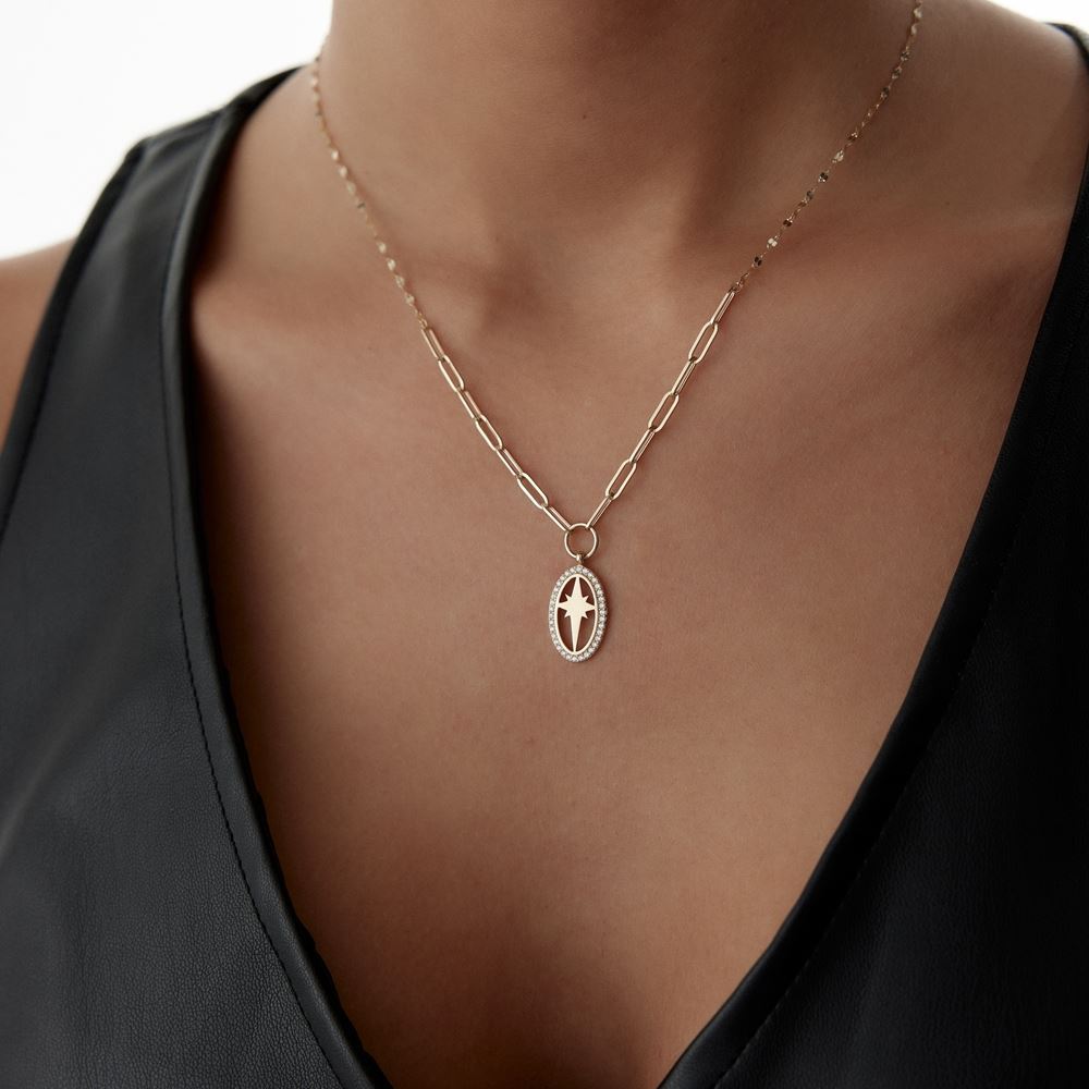 Kutup yıldız taşlı kolye, özel tasarımı ve ışıltılı detaylarıyla E-Goldia Jewellery’nin en beğenilen modellerinden biri.