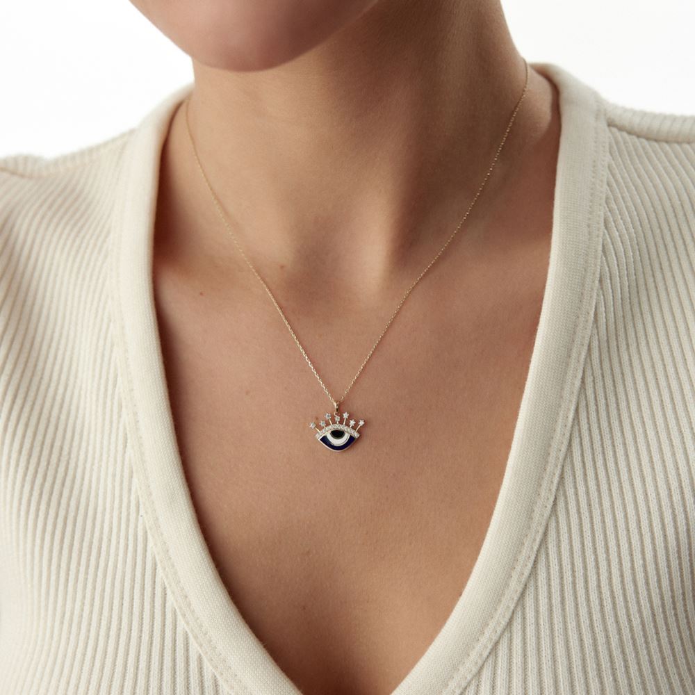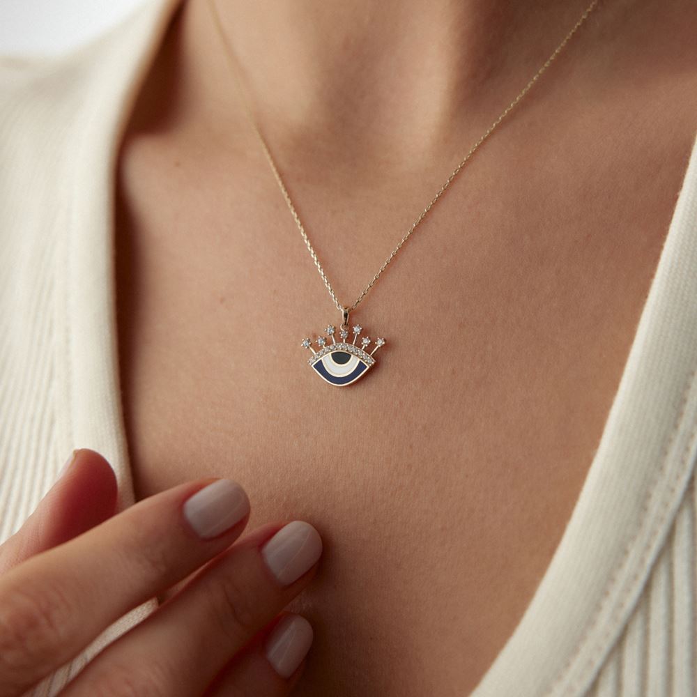 Mavi Mineli Göz Kolye: Mavi mineli göz kolye, şıklığı ve koruyucu anlamı bir araya getiriyor.