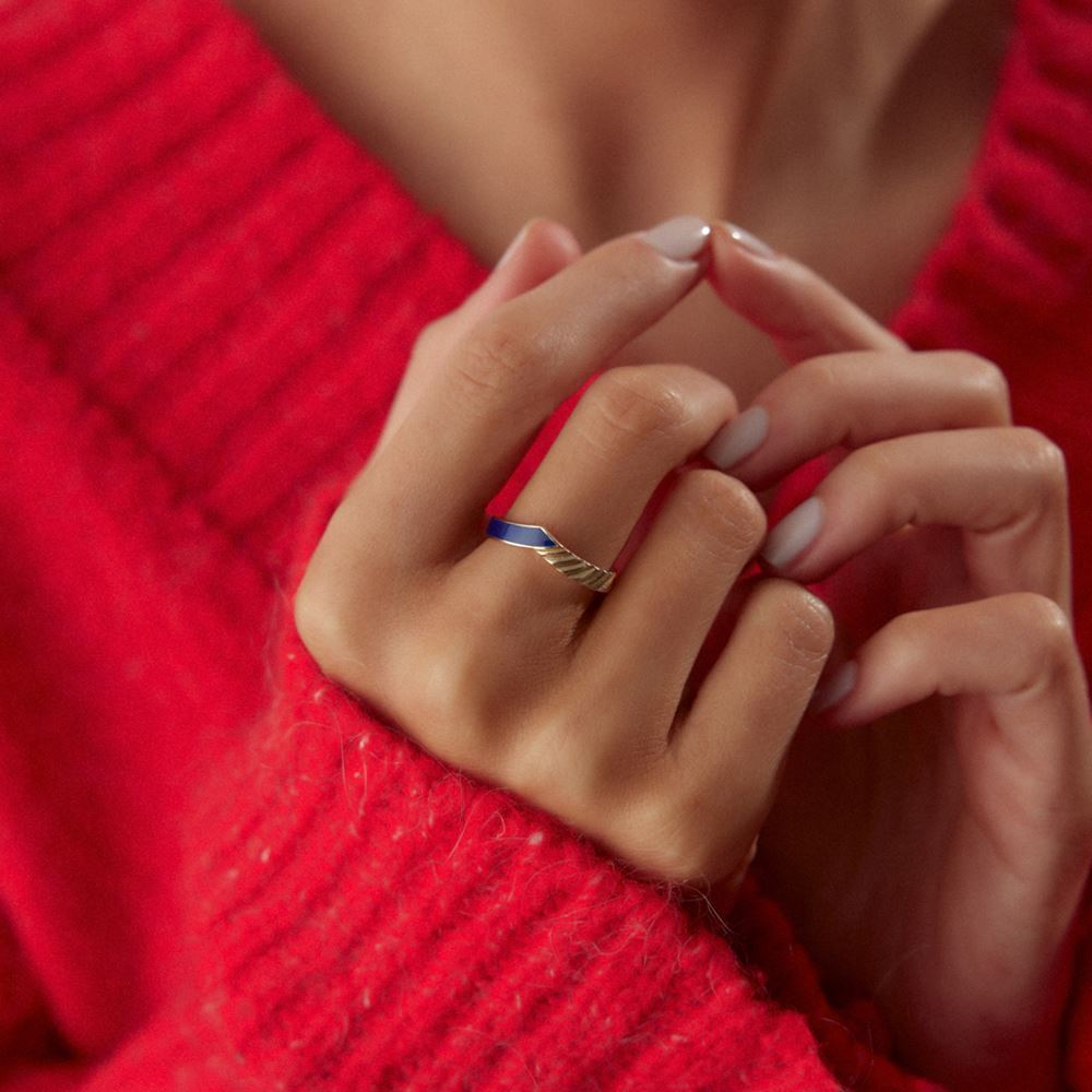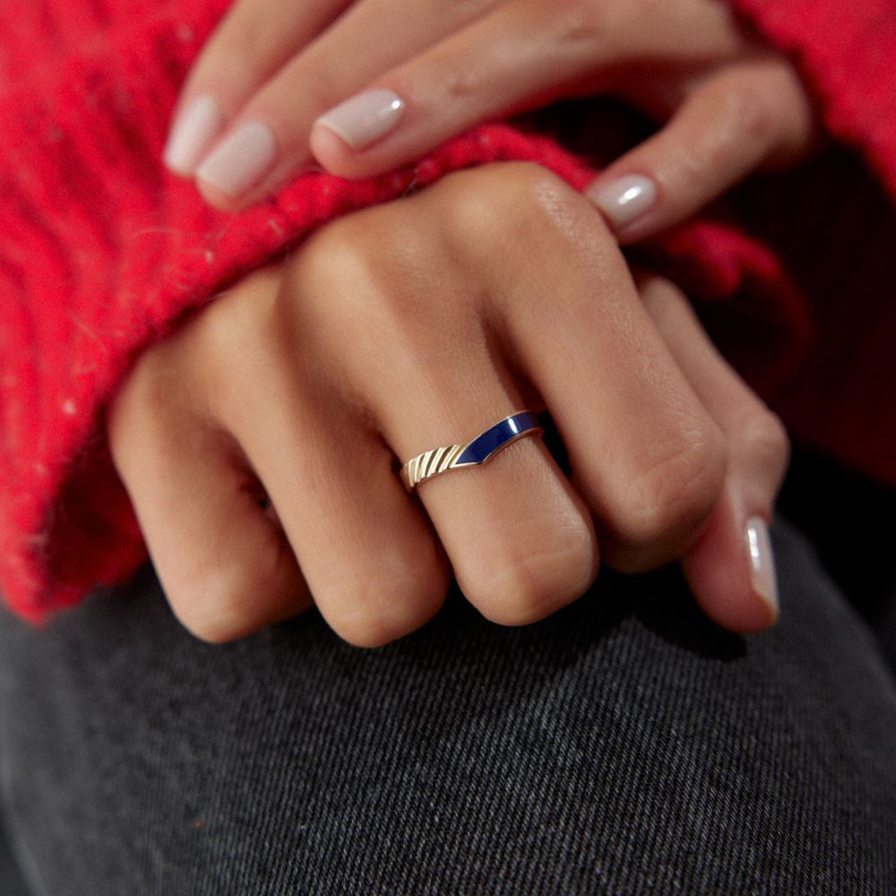 Mavi mineli yüzük, canlı rengi ve zarif tasarımıyla öne çıkar.