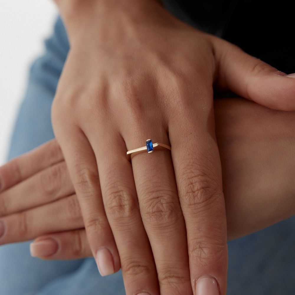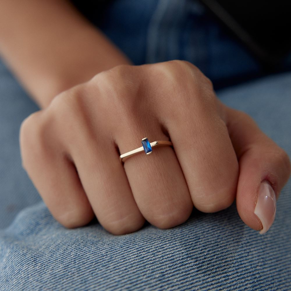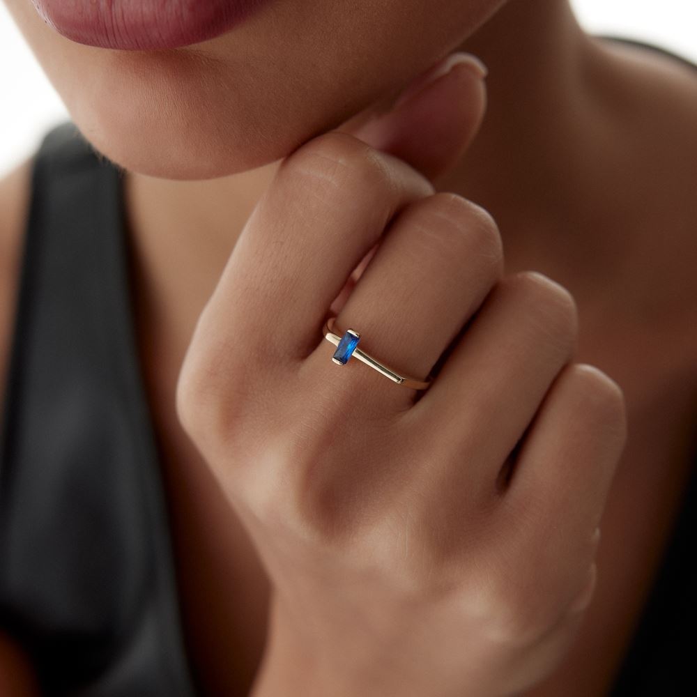 Mavi taşlı baget yüzük, göz alıcı rengi ve modern tasarımıyla E-Goldia Jewellery farkıyla stilinize ışıltı katıyor.