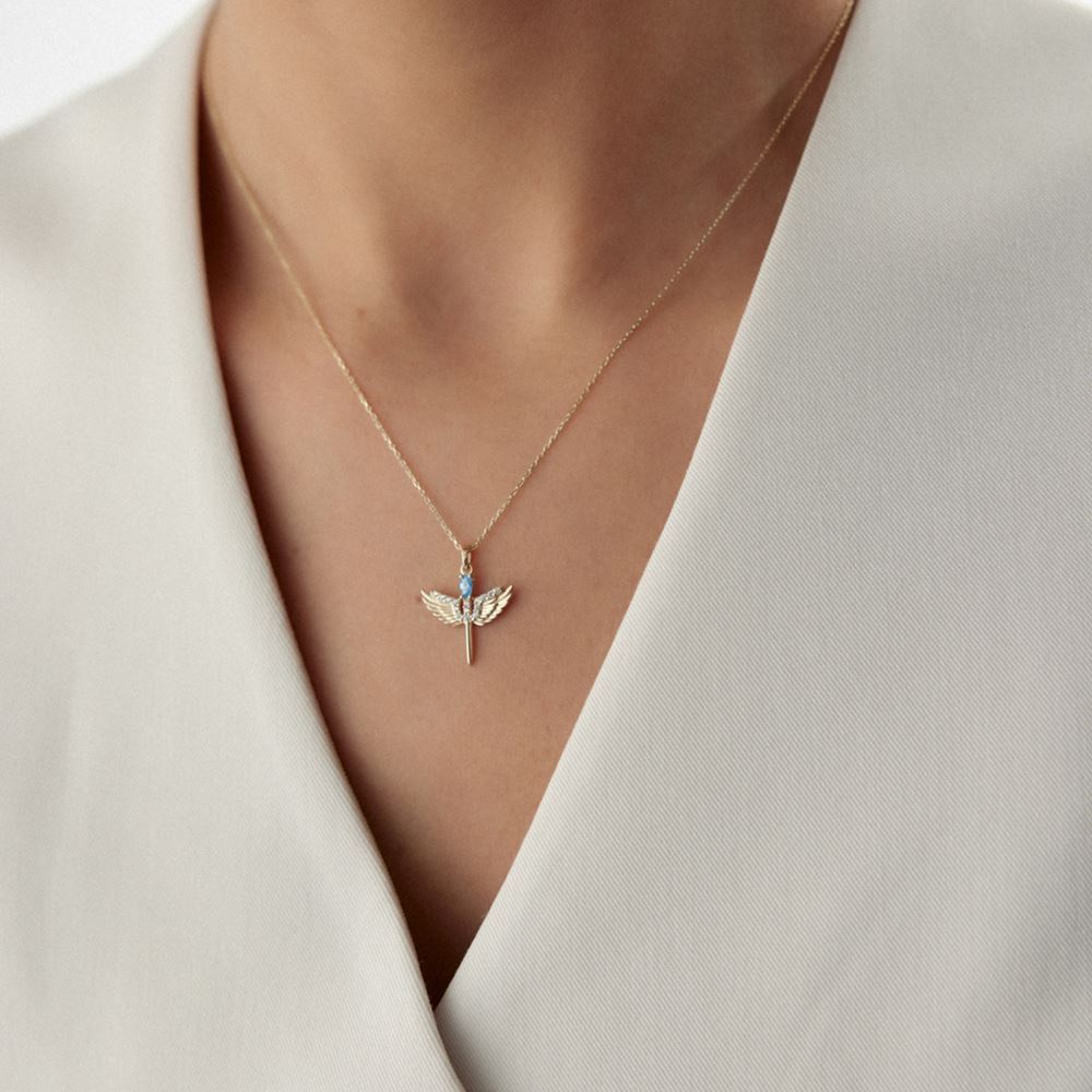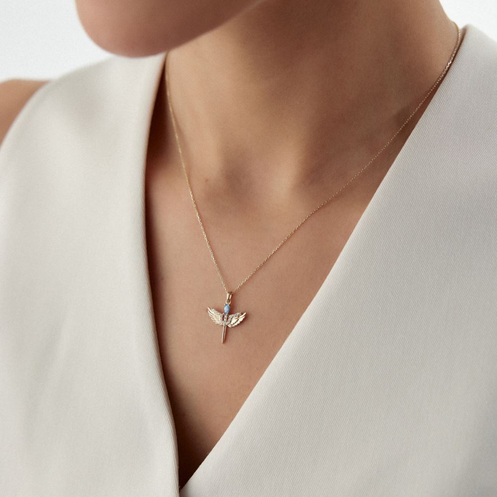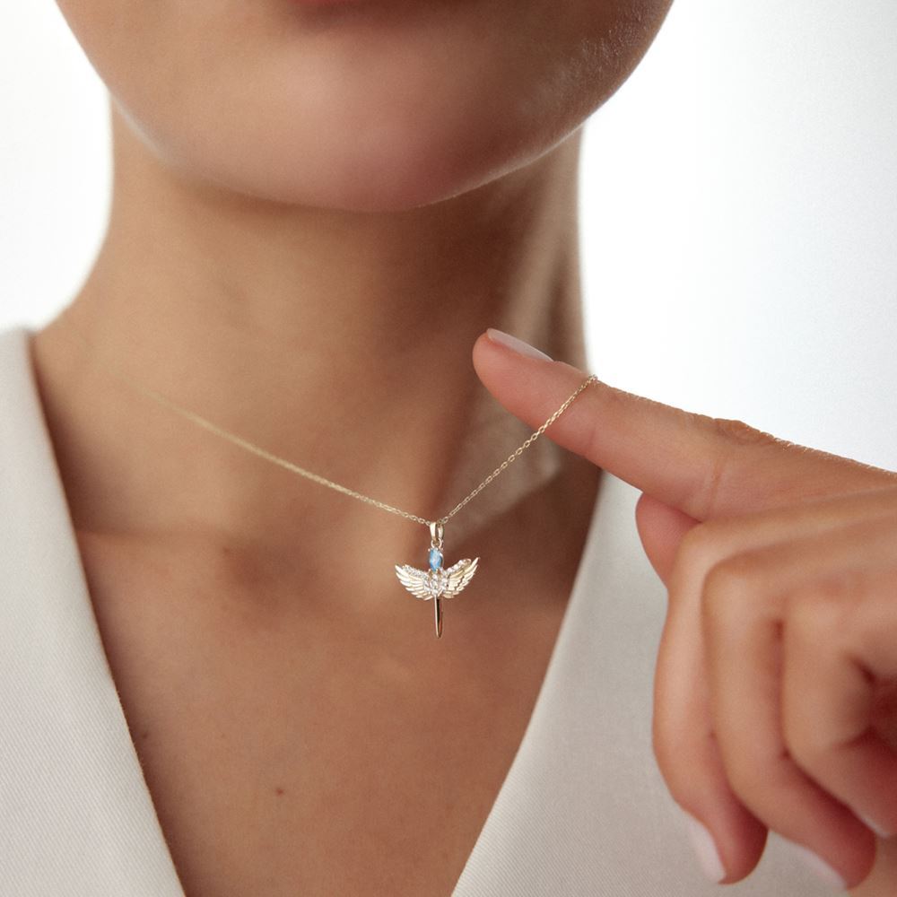 Melek Taşlı Kolye: Zarif detaylarıyla melek taşlı kolye, şıklığı ve anlamı bir araya getiriyor. Günlük kombinlerinize uyum sağlayarak özel bir stil sunar.