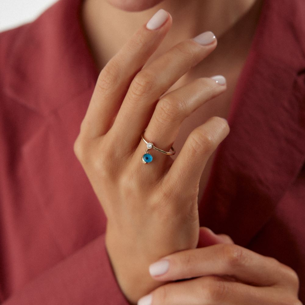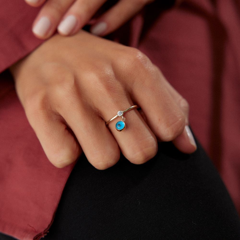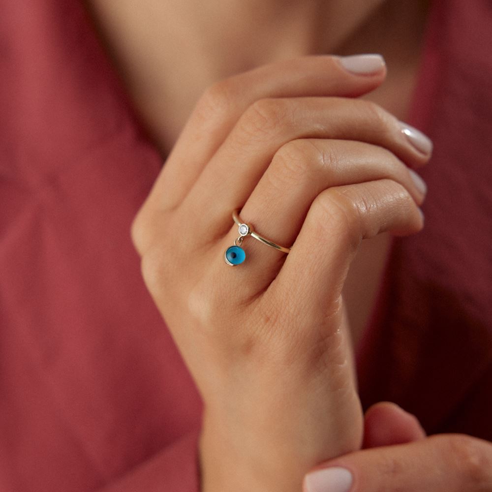 Nazar boncuğu figürüyle tasarlanmış yüzükler, sizi kötü enerjilerden korur ve şıklığınızı tamamlar. E-Goldia'da göz alıcı tasarımlar.