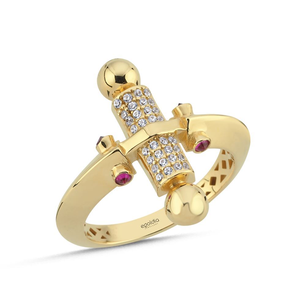 Oklava Tasarım Pembe Ve Baget Taşlı Yüzük