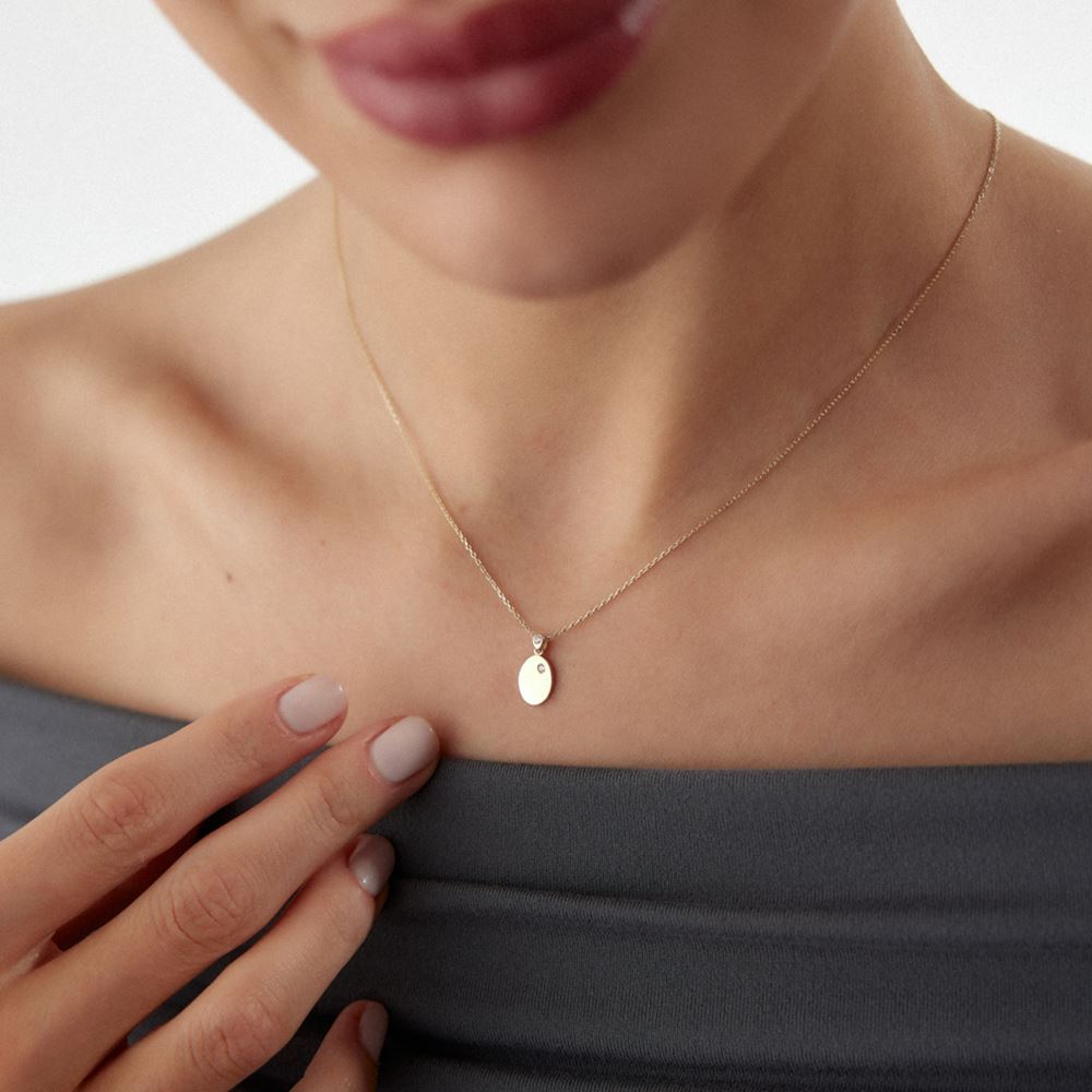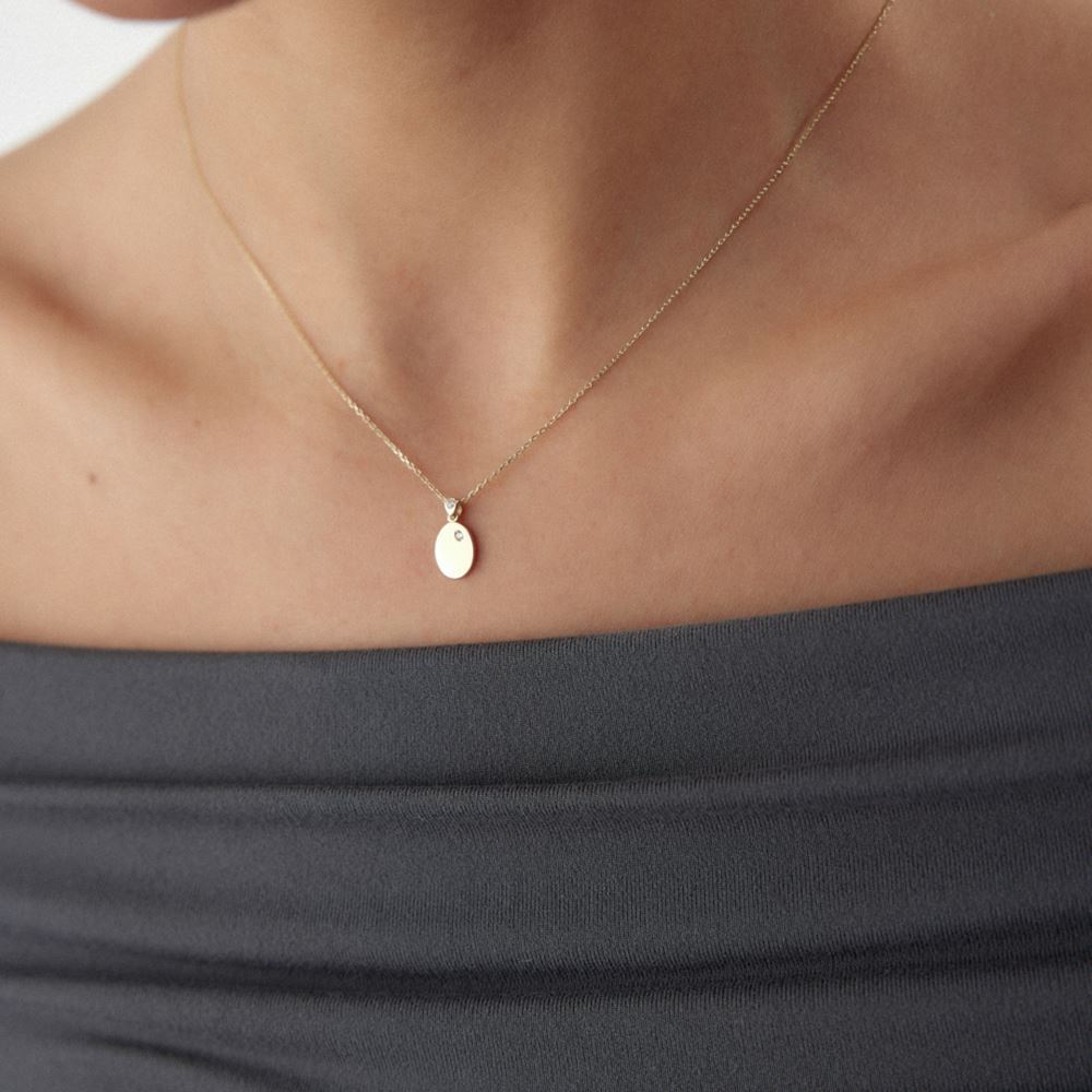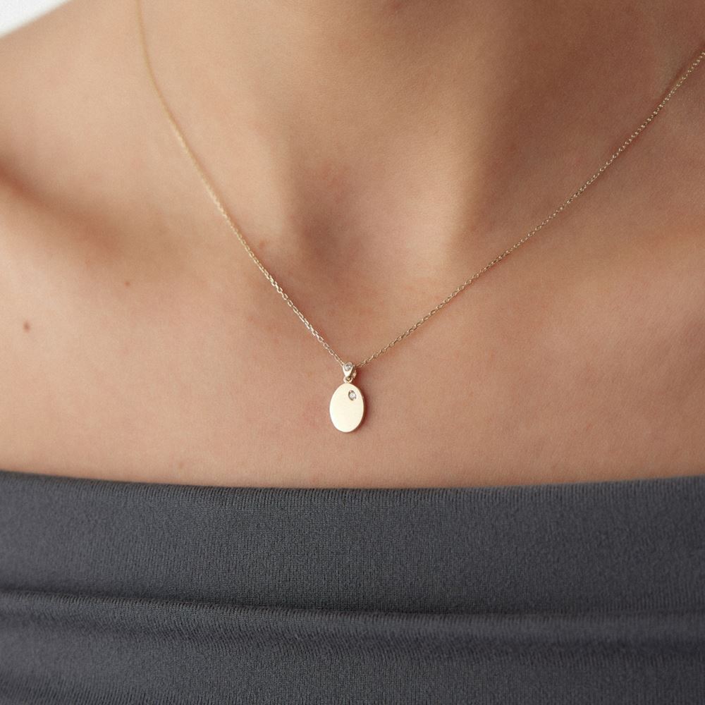 Oval Aynalı Kolye oval formu ve aynalı yüzeyiyle sade ve şık bir tamamlayıcıdır.