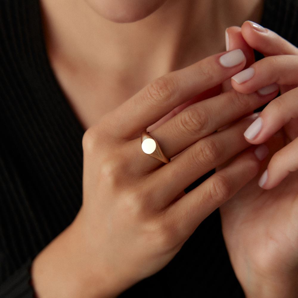 Şövalye tasarımındaki oval yüzükler, güçlü ve etkileyici bir görünüm sağlar. E-Goldia koleksiyonunda yerini aldı.