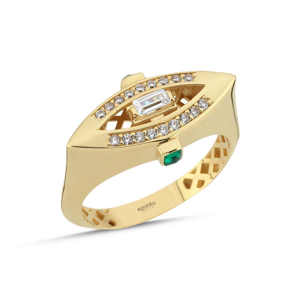 Oval Tasarım Yeşil Taşlı Yüzük, canlı yeşil taşları ve 14 ayar altının kaliteli işçiliğiyle büyüleyici bir görünüm sunar. Doğadan ilham alan bu tasarım, kendiniz veya özel biri için zarif ve anlamlı bir dokunuş sağlar.