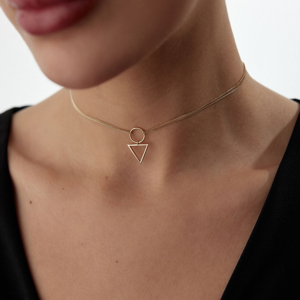 Oval üçgen tasarım kolye, zarif ve modern bir tasarımla tarzınızı yükseltir.