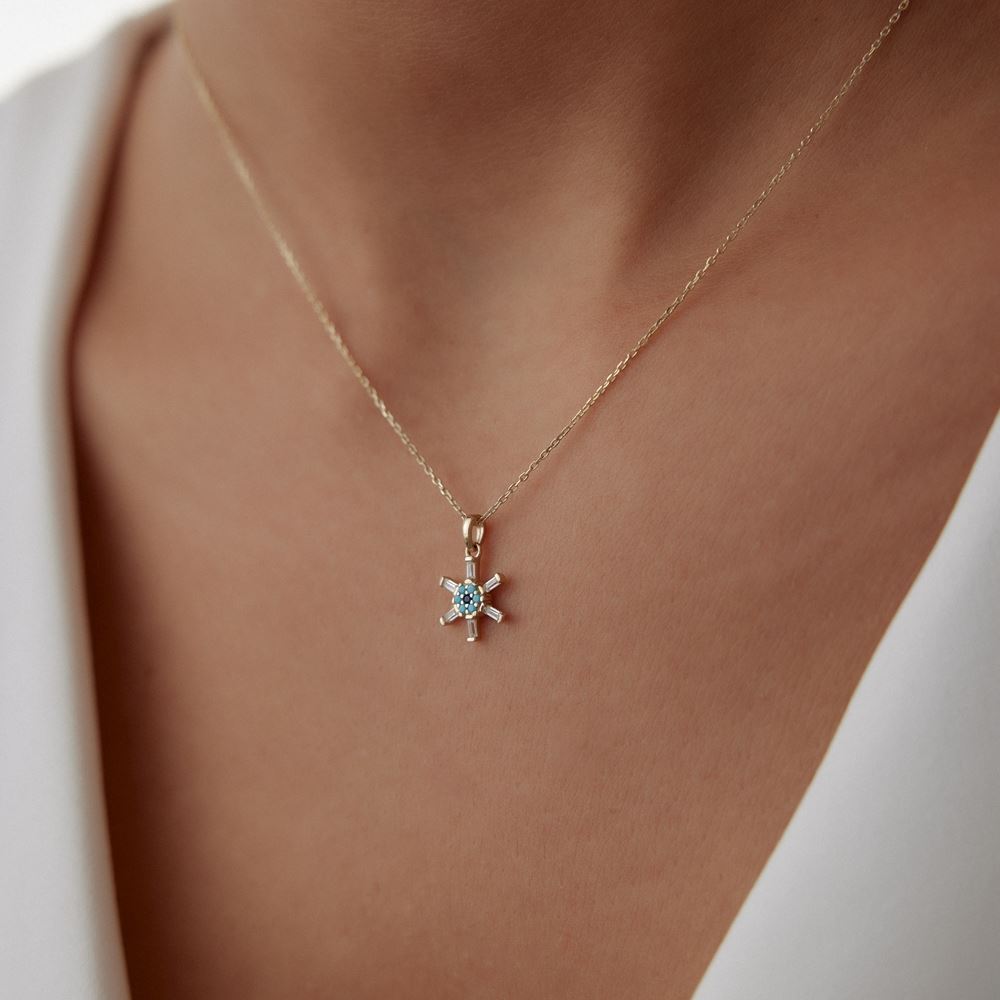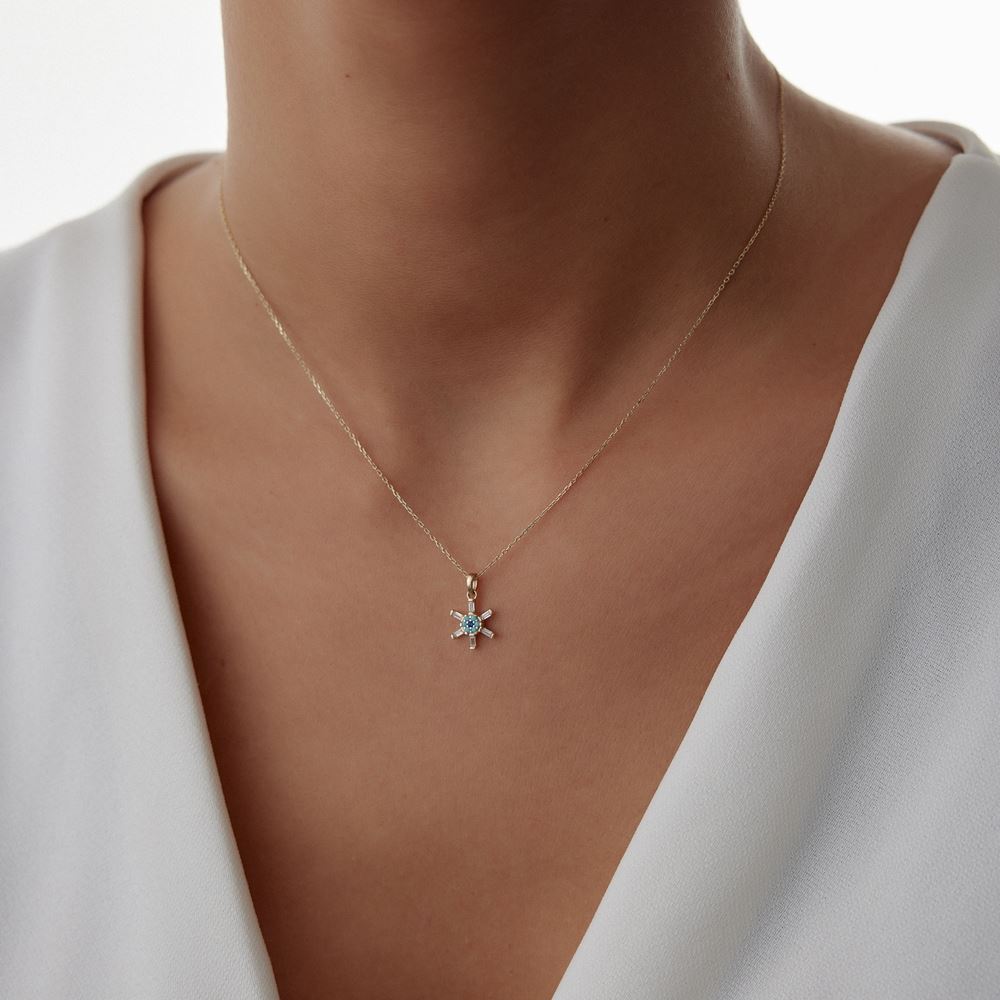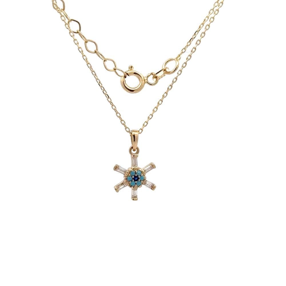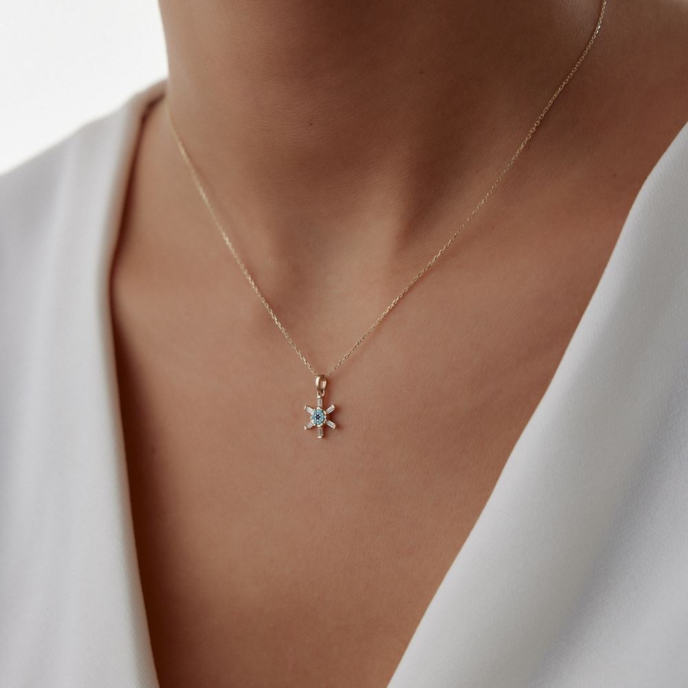 Parçalı taşlı çiçek kolye, doğanın zarif dokunuşunu yansıtan tasarımıyla E-Goldia Jewellery’de yer alıyor.