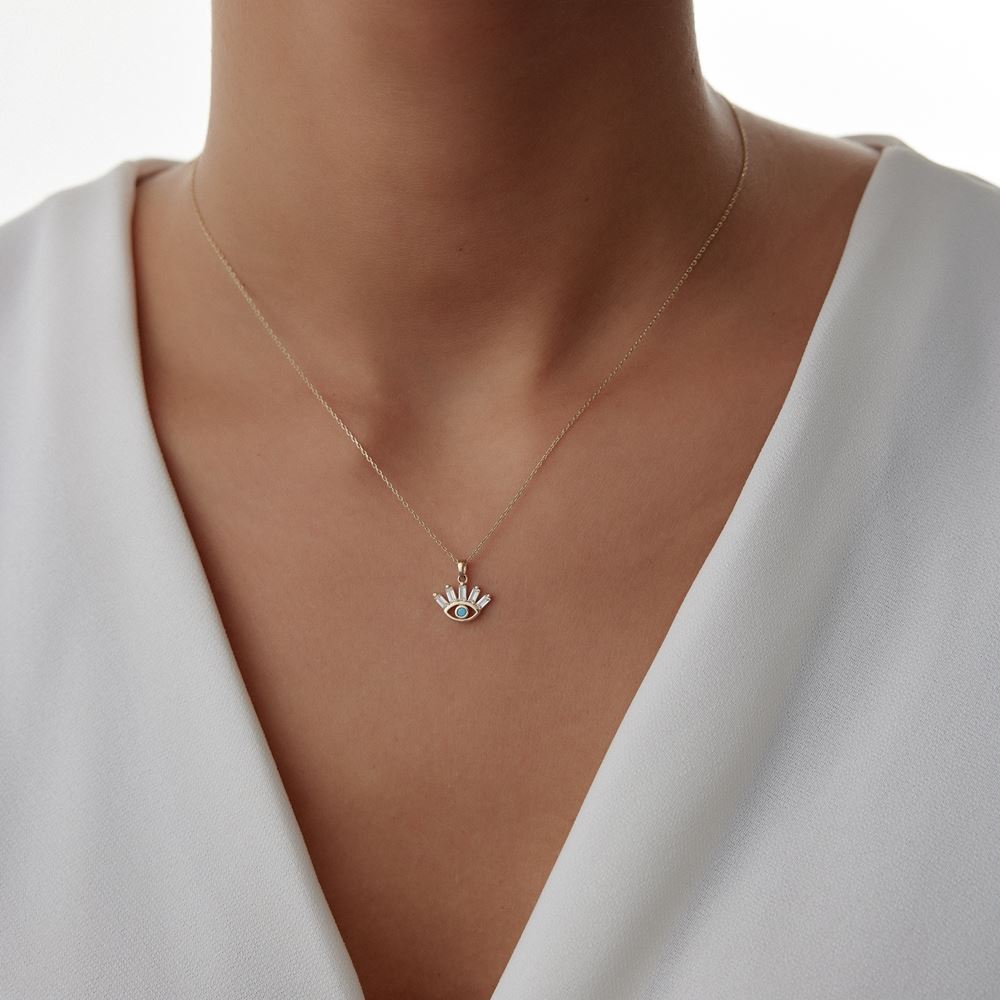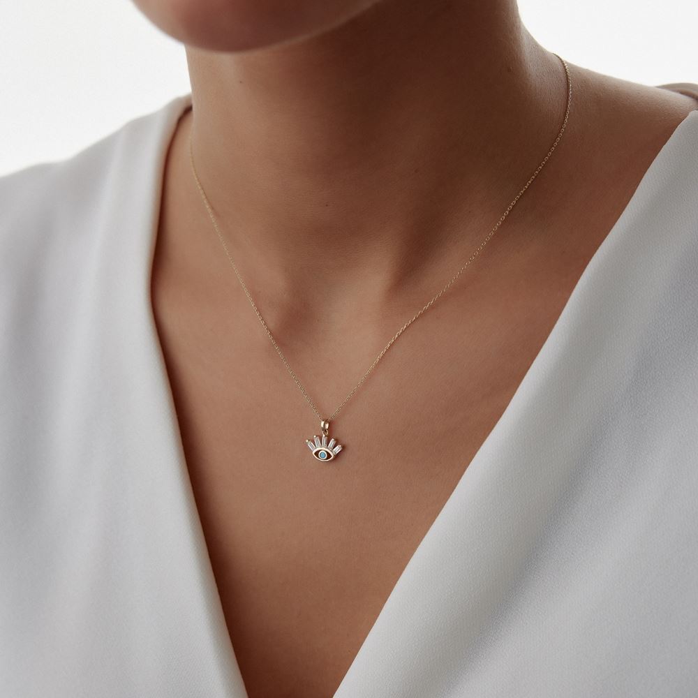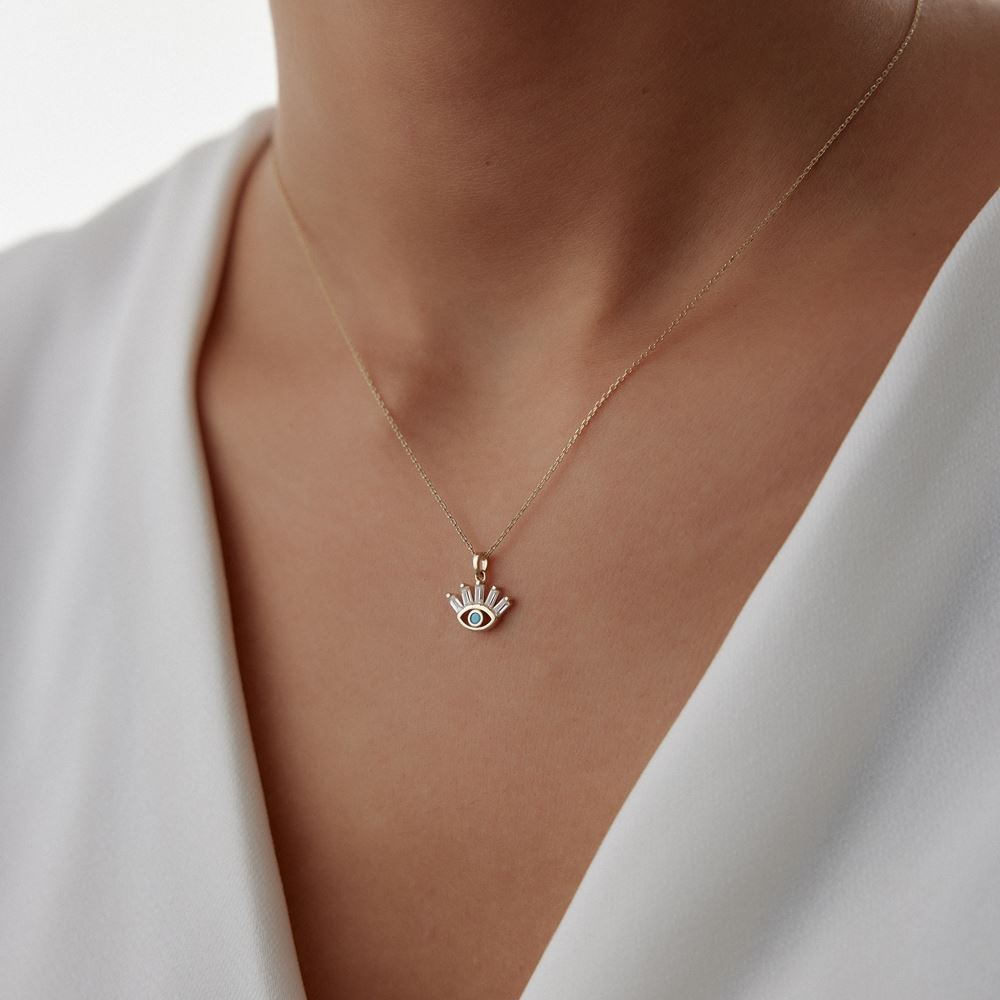 Parçalı taşlı göz tasarım kolye, enerjisi yüksek detaylarıyla E-Goldia Jewellery koleksiyonunda fark yaratıyor.