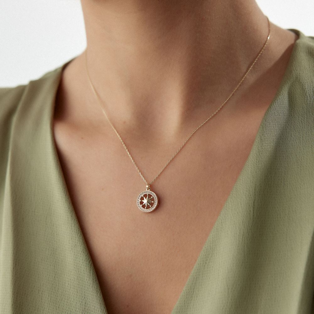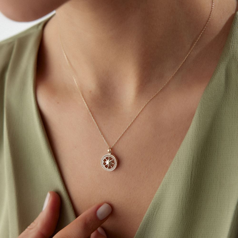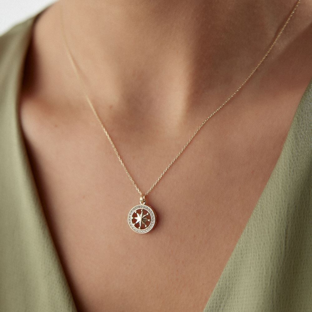 Pusula tasarımı ve taş detaylarıyla maceracı ruhunuza hitap eden bir kolye.