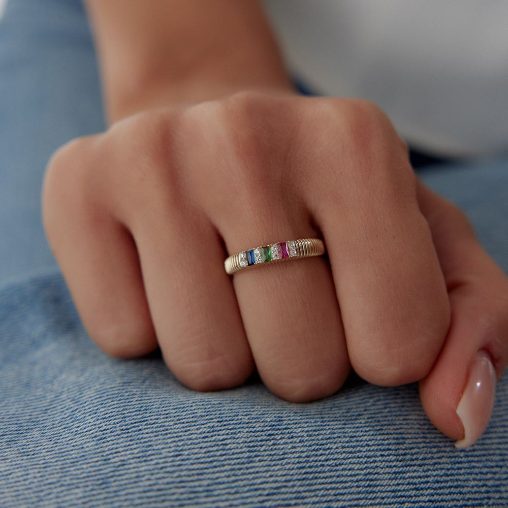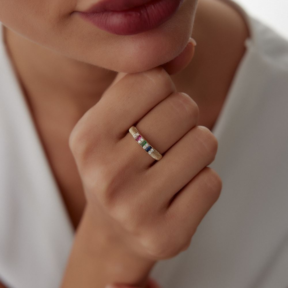 E-Goldia Jewellery’nin Renga Renk Baget Taşlı Yüzük koleksiyonu, canlı renkleri ve zarif baget kesim taşlarıyla göz kamaştırıyor. Modern tasarımıyla dikkat çeken bu yüzükler, renkli taşların enerjisini ve altın şıklığını bir araya getirerek stilinize sofistike bir dokunuş katıyor. Günlük kullanım ve özel anlar için mükemmel bir tercih olan bu özel modeller, estetik ve özgünlüğü sevenler için tasarlandı. Online kuyumcu güvencesiyle keşfedin!