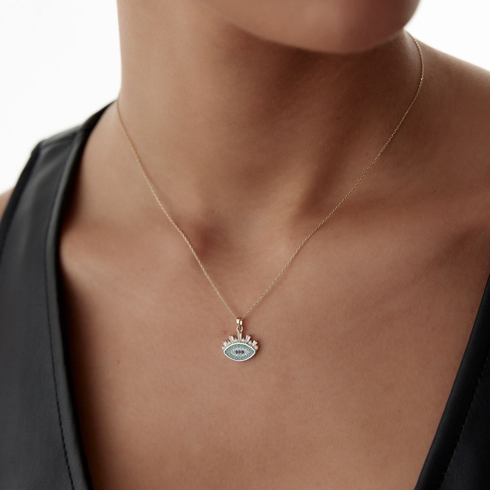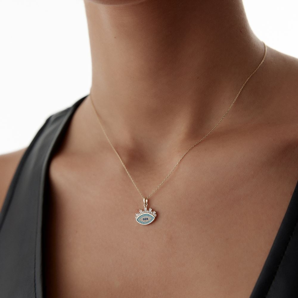 Renkli parçalı taşlı göz kolye, göz alıcı detayları ve modern çizgileriyle E-Goldia Jewellery koleksiyonunda.
