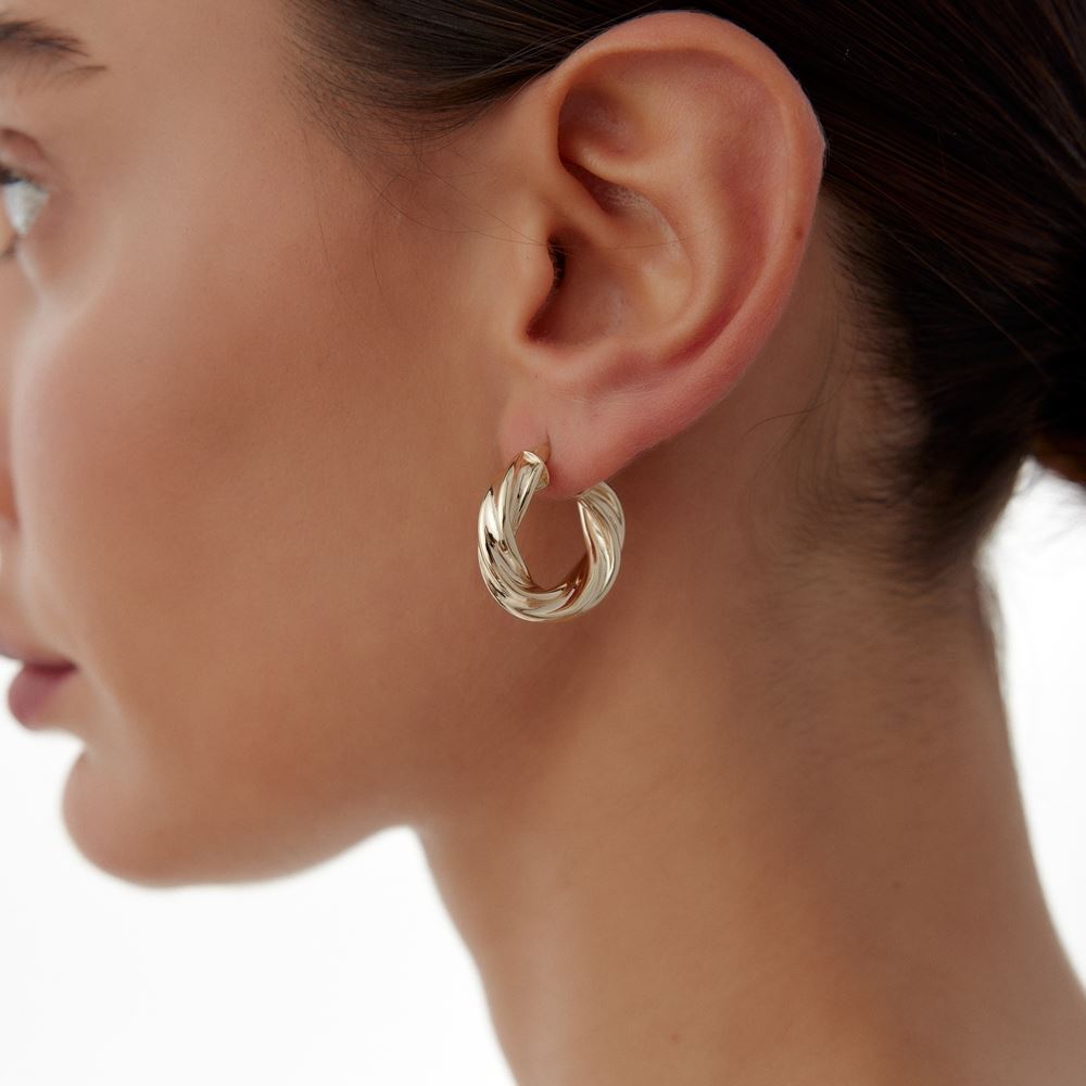 Sade kıvrımlı halka küpe, klasik tarzı ve modern yorumu bir araya getirerek E-Goldia Jewellery’de fark yaratıyor.