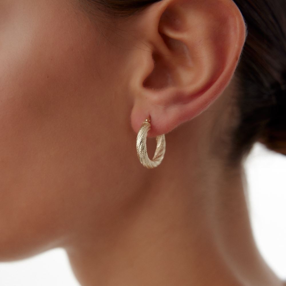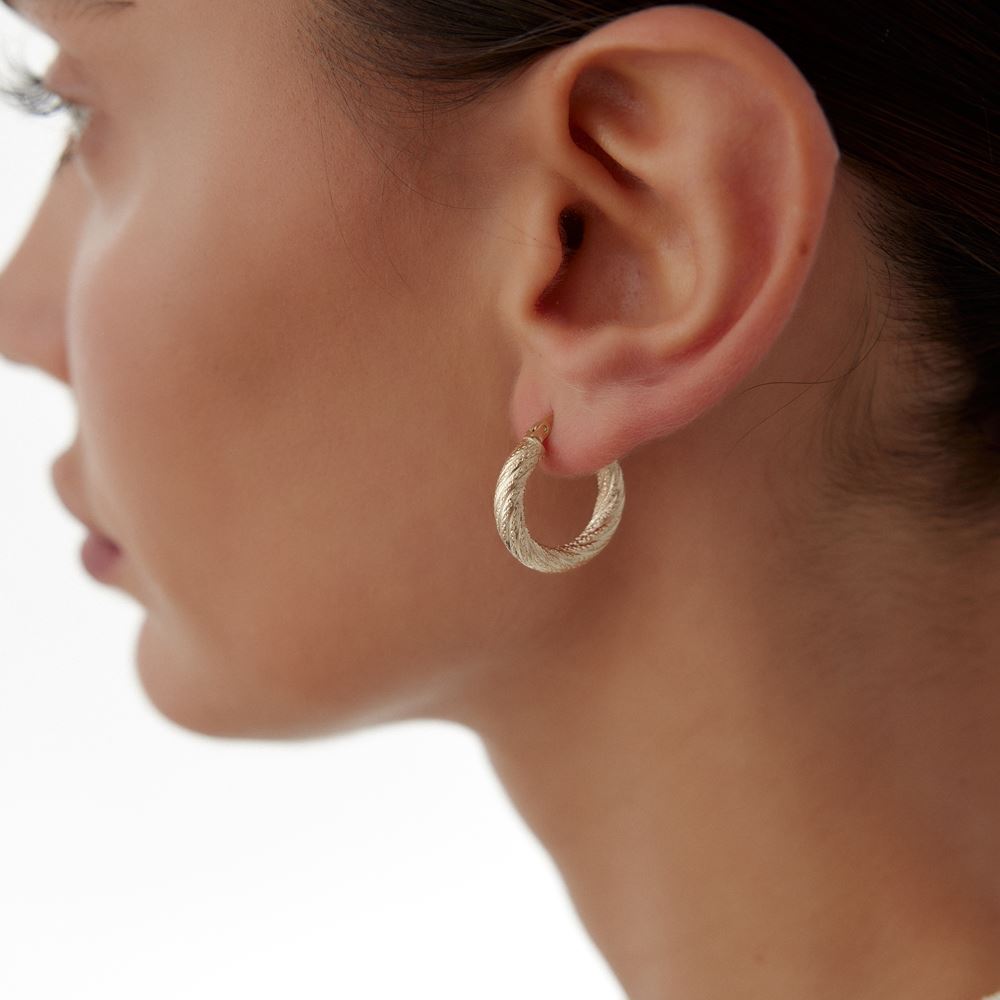 Sade kıvrımlı nokta halka küpe, yalın şıklığıyla her anınıza uyum sağlıyor. E-Goldia Jewellery koleksiyonlarında.