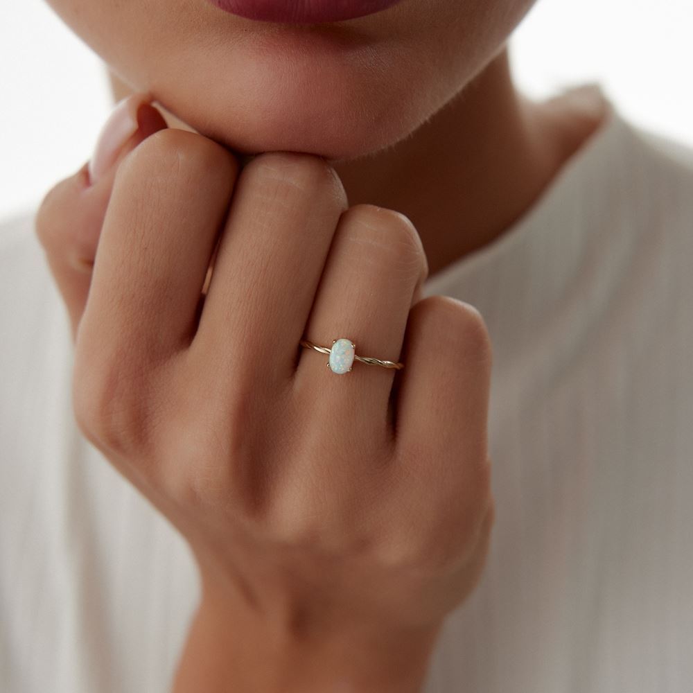 Sedef taşlı burgu yüzük, zarif ve doğal dokusuyla E-Goldia Jewellery koleksiyonunda şıklığı simgeliyor.