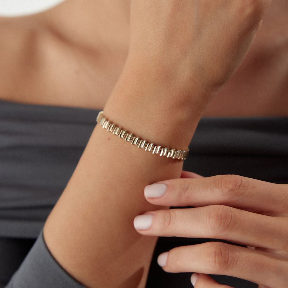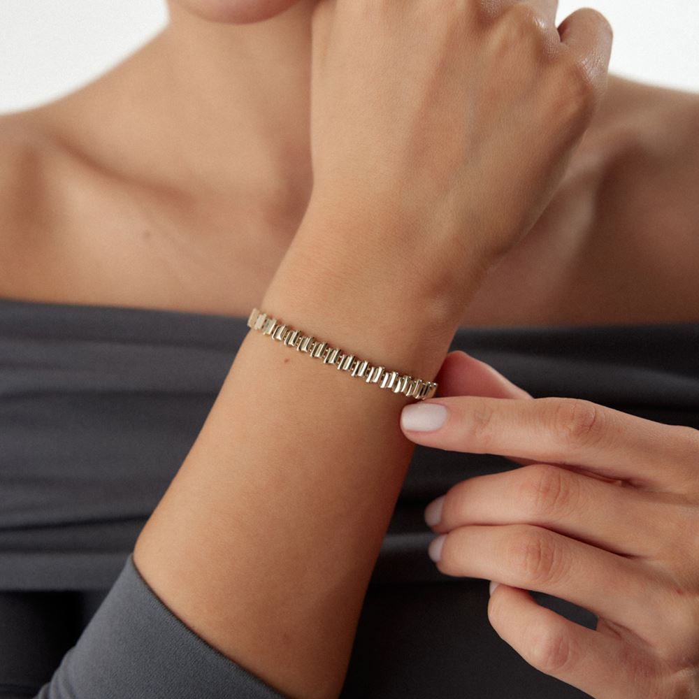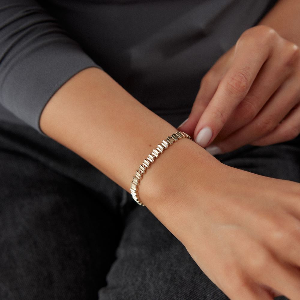 Senfonik tasarım bileklik, zarif ve şık tasarımıyla stilinizi tamamlar. E-Goldia koleksiyonunda yerini aldı.
