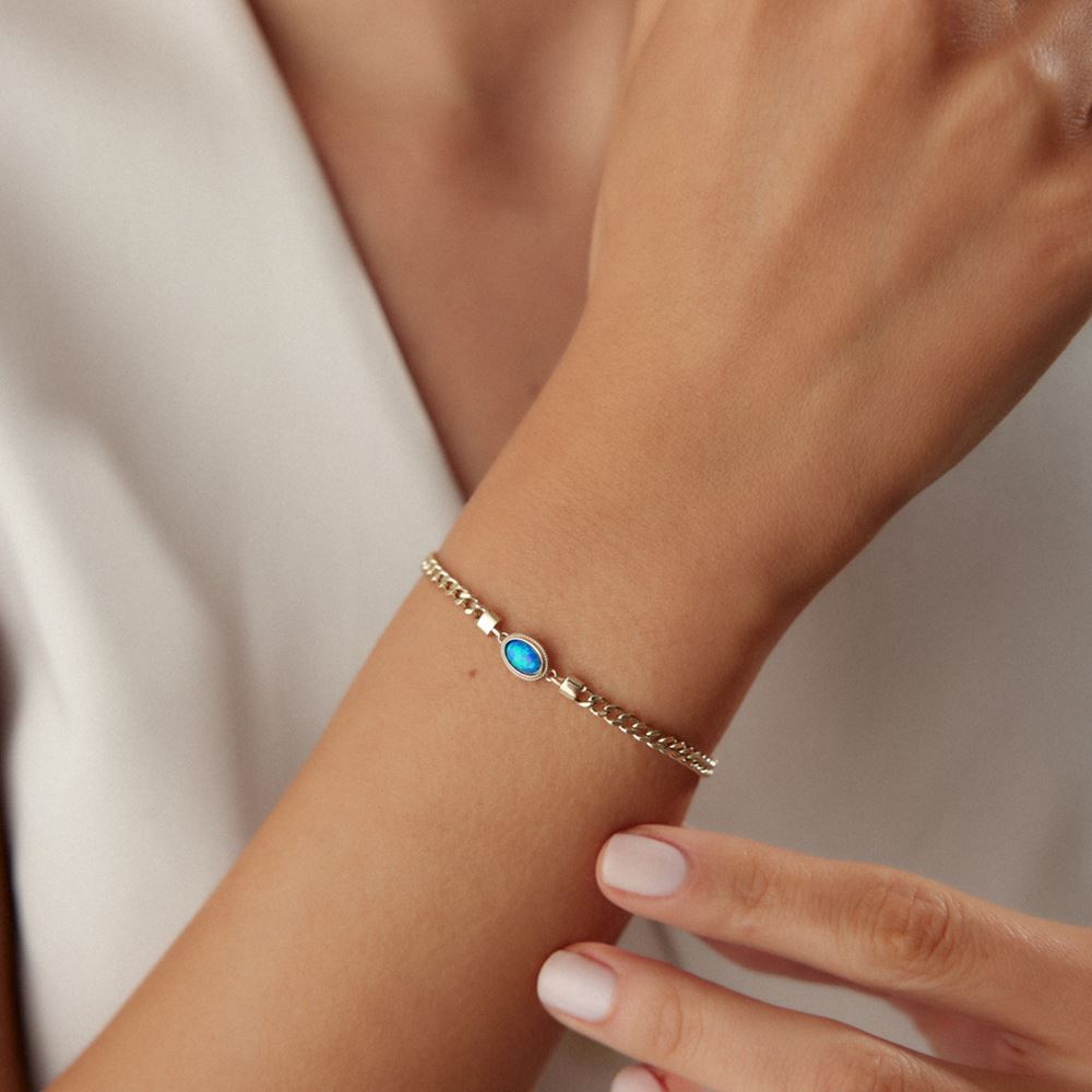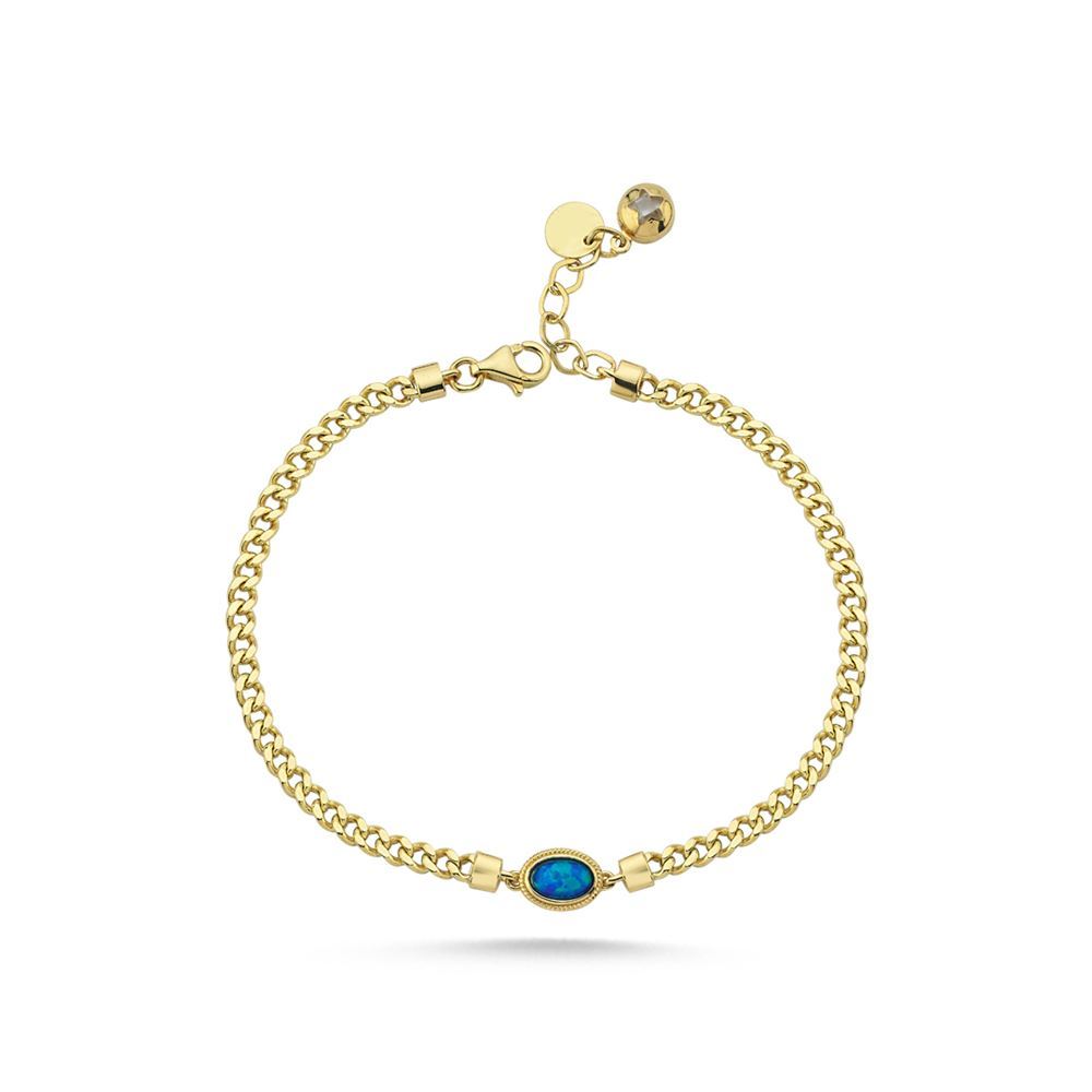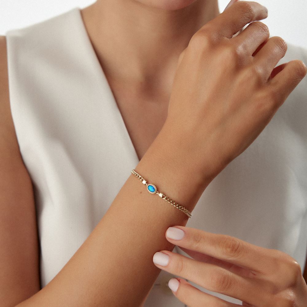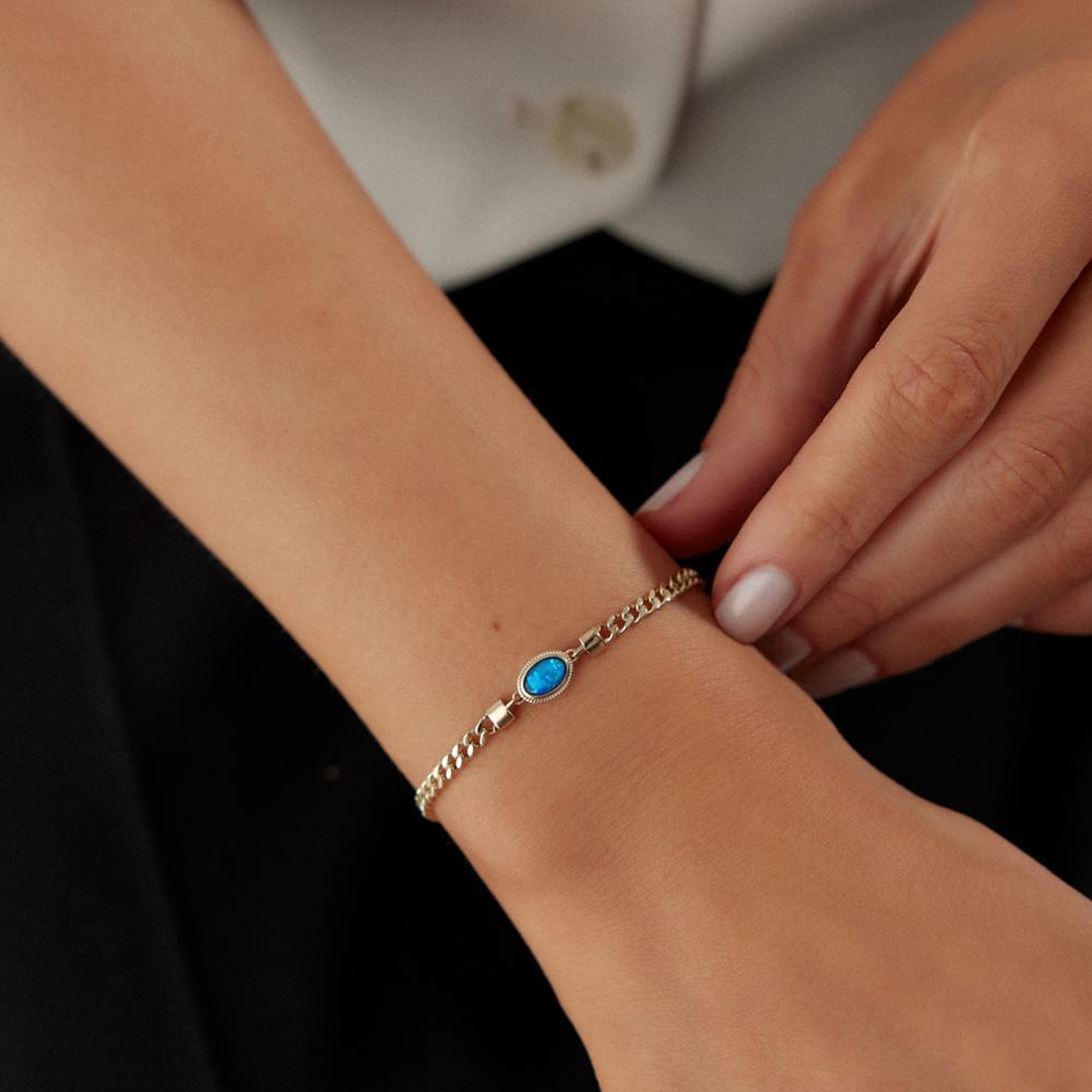 Simli mavi taşlı gurmet bileklik, zarif ve şık tasarımıyla stilinize ışıltı katar. E-Goldia koleksiyonunda.